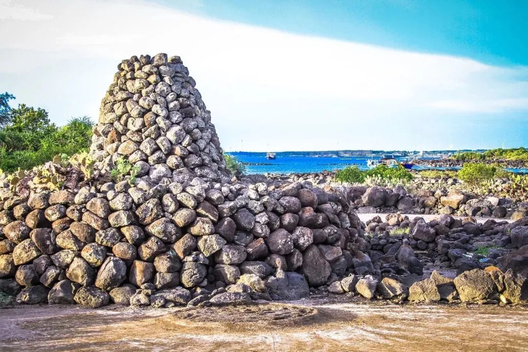 与北岸哥往来渐密,我便常赴北岸做客。那里多是石头砌成的老屋,铺着长短错落的石道。路边,房前屋后、田间地头,随处散落着大小不一的黑石,皆是远古火山喷发留下的印记。
