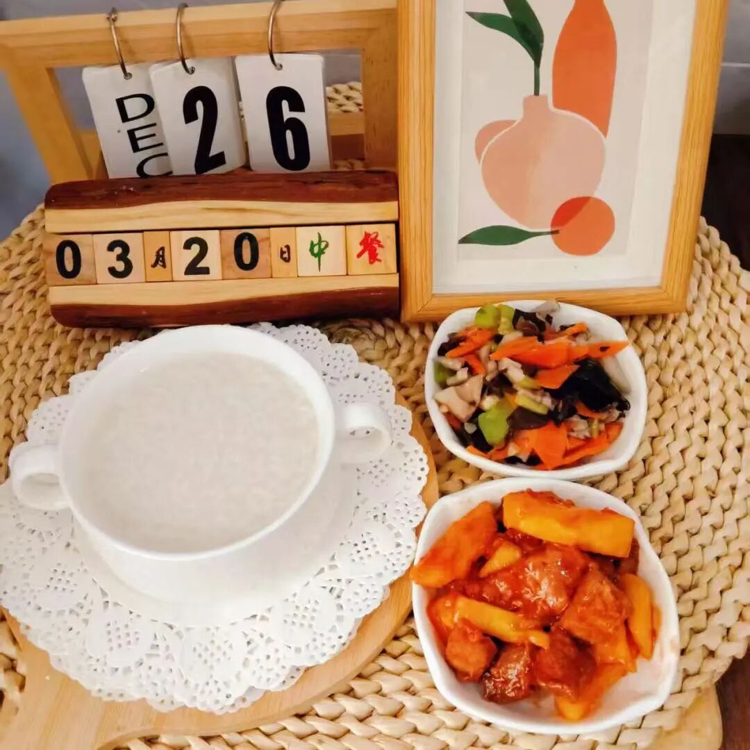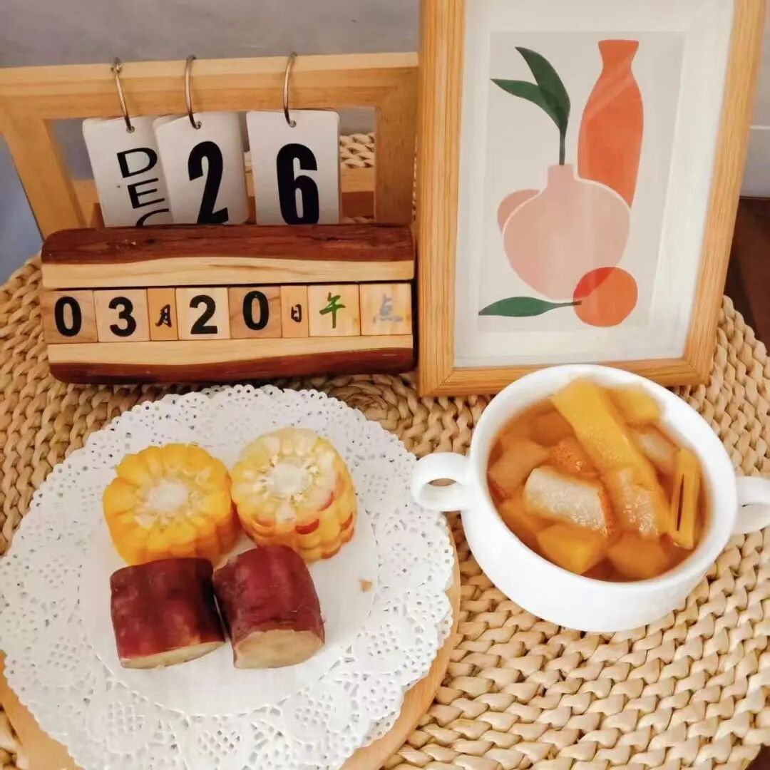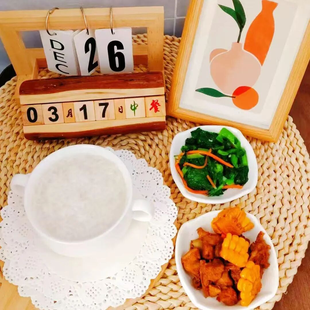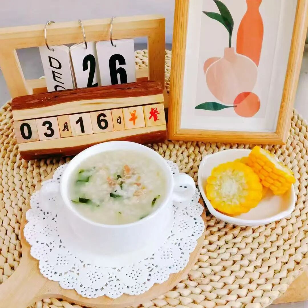 山药肉末粥、蒸玉米