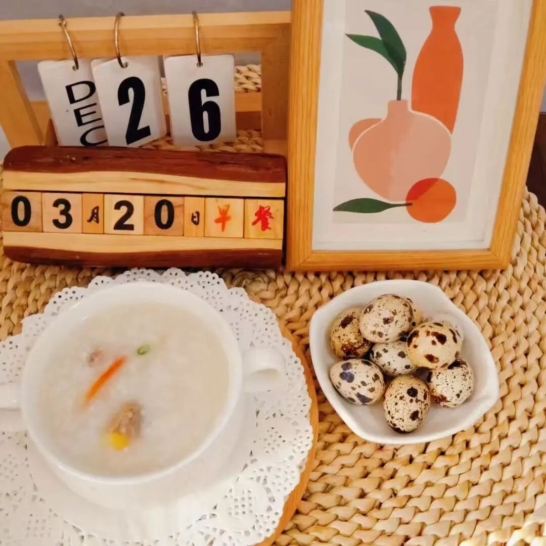 香葱鸽子粥、水煮鹌鹑蛋