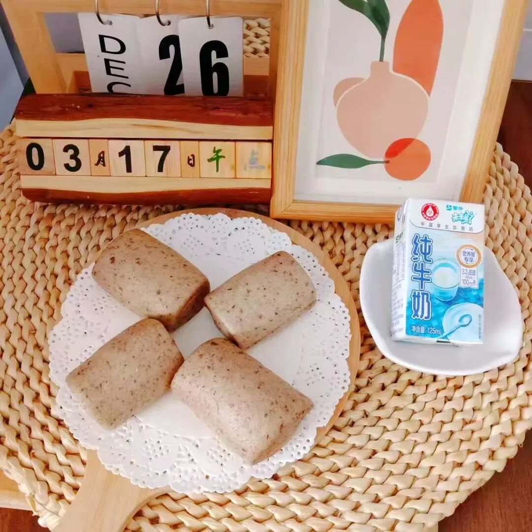 蜜豆卷、纯牛奶