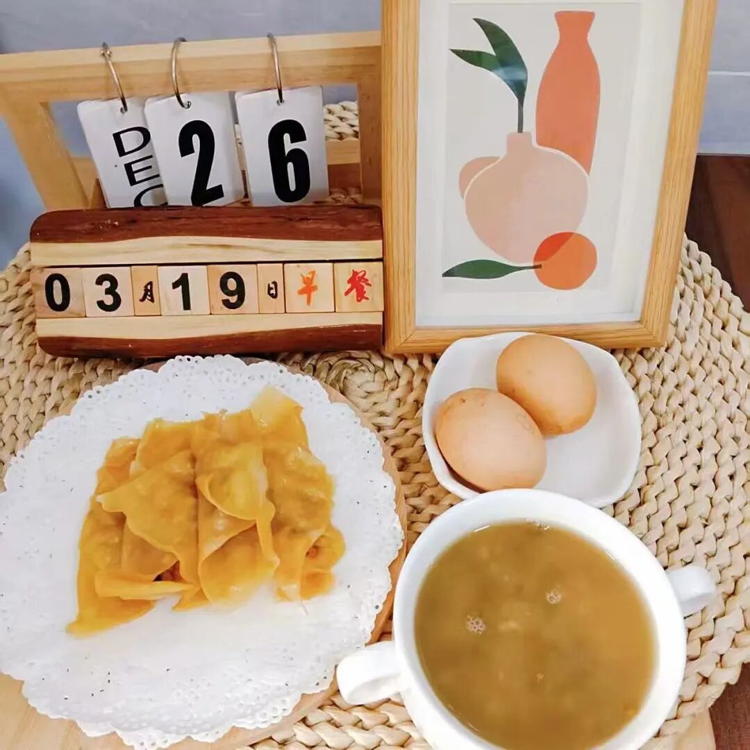 蒸饺、茶叶蛋、绿豆汤