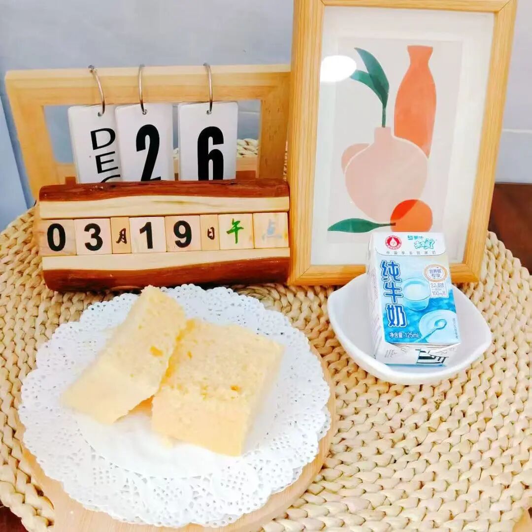 蒸蛋糕、纯牛奶