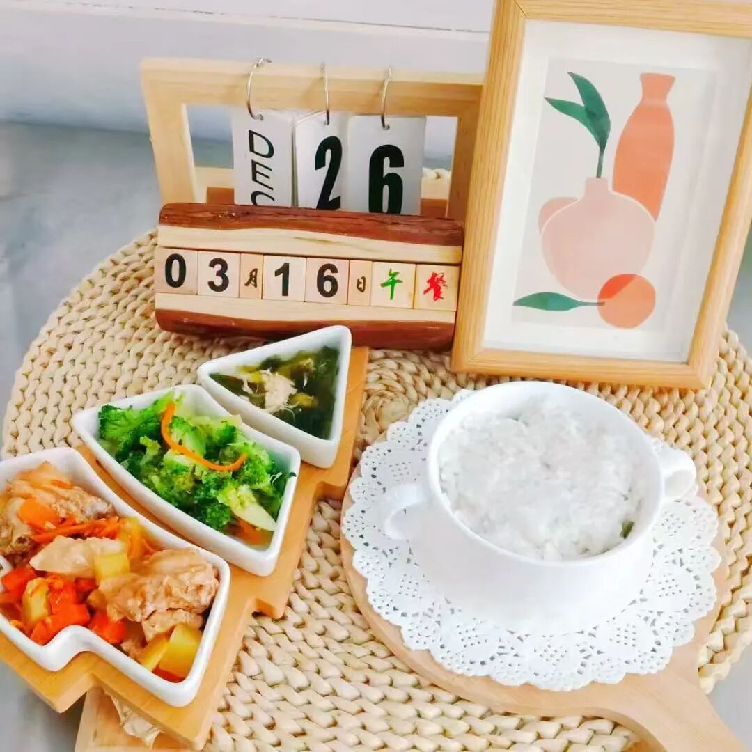 白米饭、虫草花蒸鸡、清炒西兰花、紫菜蛋花汤