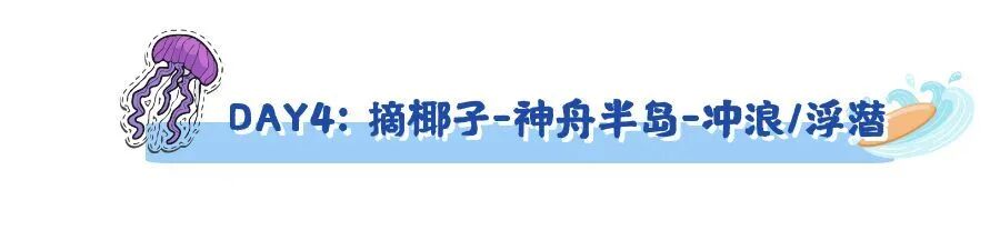 ➎冲浪,浮潜:鉴于海上运动的风险评估,建议年龄3-60岁。60岁以上可以报名,但不建议参与潜水活动,如需参与,需签订免责协议。