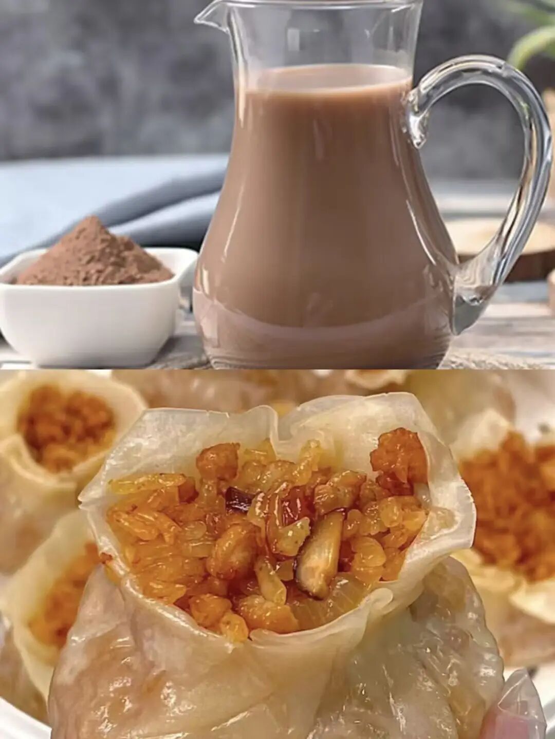 牛奶阿华田、肉汁烧麦