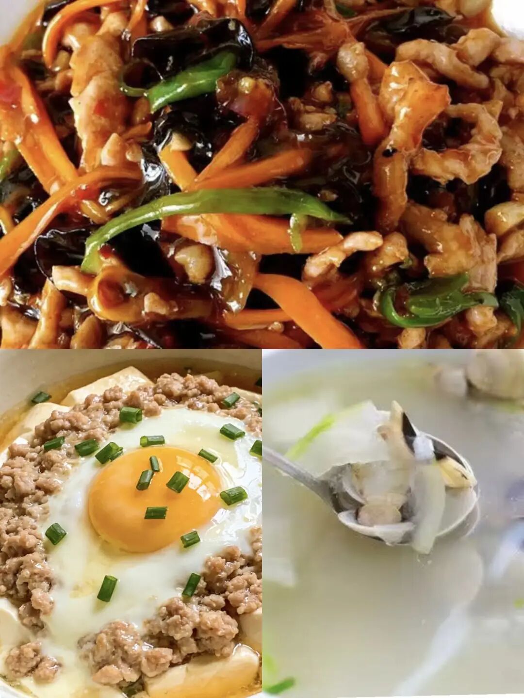 鱼香肉丝、肉沫豆腐抱鸡蛋