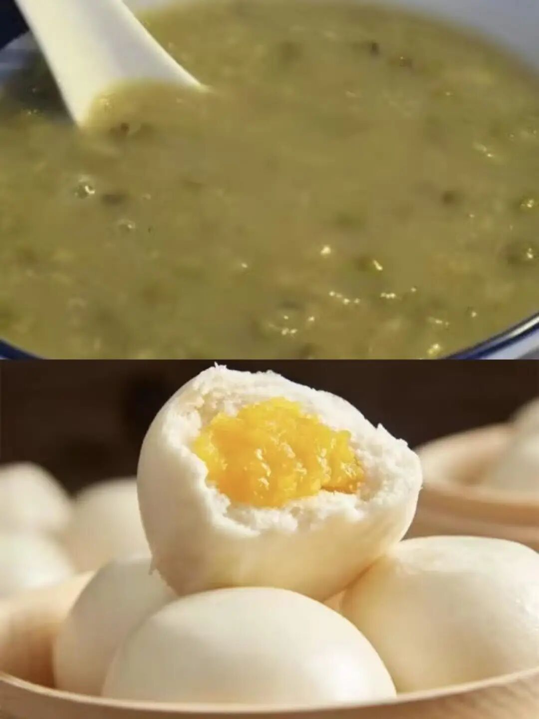 绿豆浓汤、奶黄包