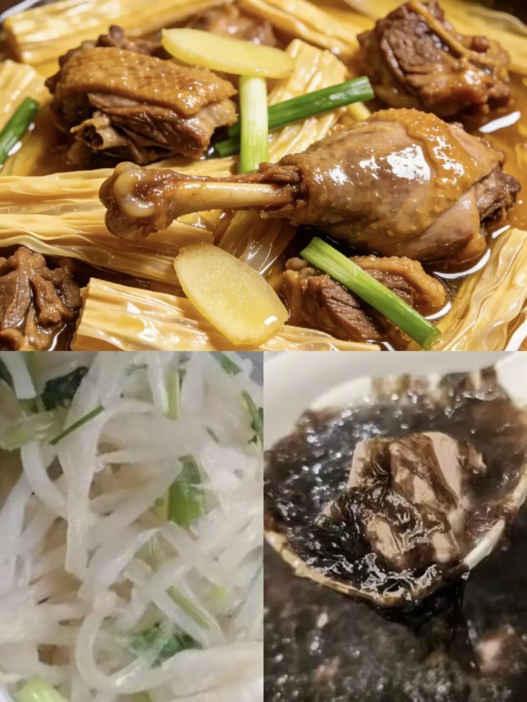 腐竹焖鸭肉、白萝卜炒青蒜