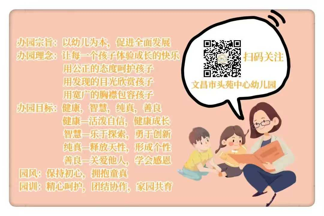 声明:本图文由文昌市头苑中心幼儿园编辑发布,部分素材来源于网络,如有侵犯您的权益请直接联系我们,我们会进行删除或者协商许可使用事宜。