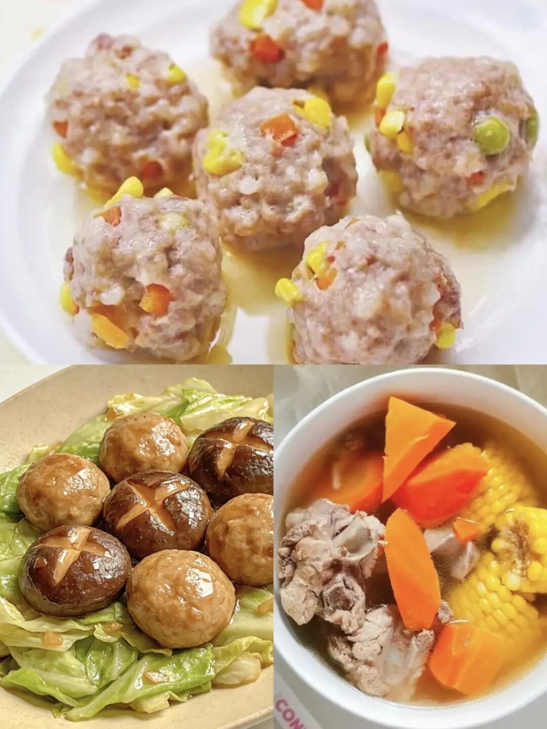 五彩肉丸、椰子菜炒香菇丸