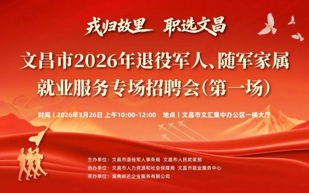 “戎归故里 职选文昌”文昌市2026年退役军人、随军家属就业专场招聘会(第一场)