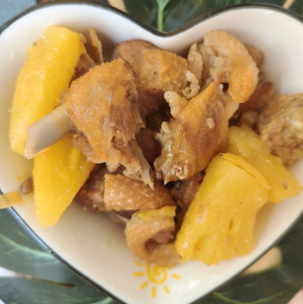 菠萝焖鸭、炒上海青、紫菜蛋花汤