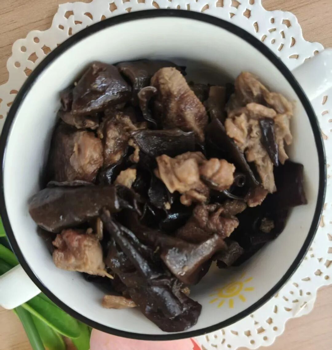 鸡肉焖木耳、 清炒南瓜