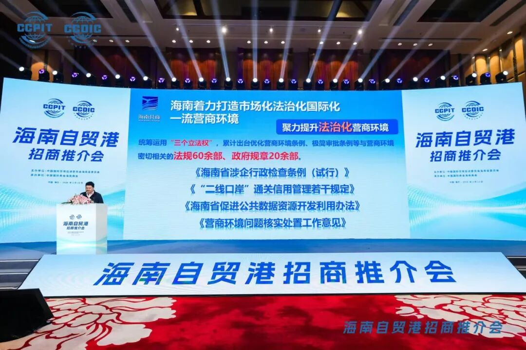 海南省贸促会借助举办论坛契机,举办自贸港招商推介会,邀请财政、金融、营商、园区等部门向企业家推介税收政策、多功能自由贸易账户、自贸港营商环境、重点园区建设等情况。海南省地方金融管理局详细介绍了自贸港金融创新政策,重点推介了多功能自由贸易账户(EF账户)的便利化优势;海南省财政厅聚焦自贸港税收政策体系,深入解读了“零关税、低税率、简税制”原则下的核心利好;中国服务贸易协会推介了“亚太区域数质中心”项目,依托26万平方米线下载体和Al大数据平台,构建一站式综合服务、数质供应链、跨境电商全域矩阵及全球A1智慧招投标四大平台,分享拥抱海南自贸港的机遇和未来;海南省营商环境厅展示了海南在打造市场化、法治化、国际化营商环境方面的成果;海口国家高新技术产业开发区作为自贸港产业发展主阵地,介绍了“一区七园”规划及生物医药、先进制造业等支柱产业;定安塔岭工业园展示了其在高端食品加工、绿色建筑等产业的集聚优势。