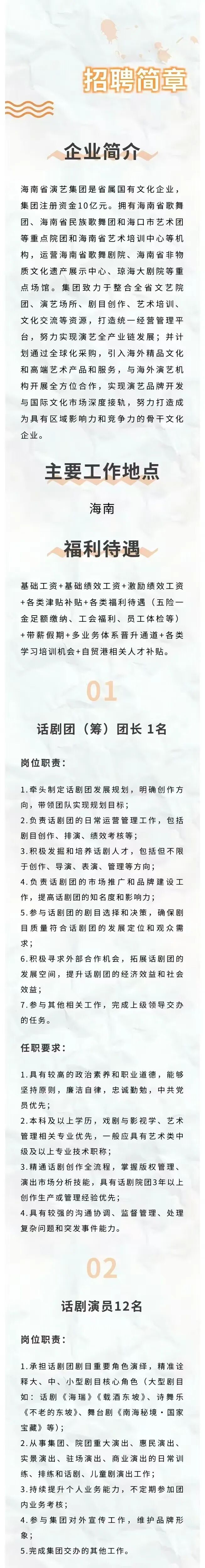 海南省演艺集团招聘公告