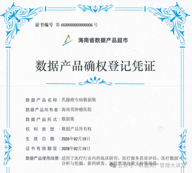 海南省肿瘤医院 第2批“医疗领域”数据产品完成数据资产确权登记!