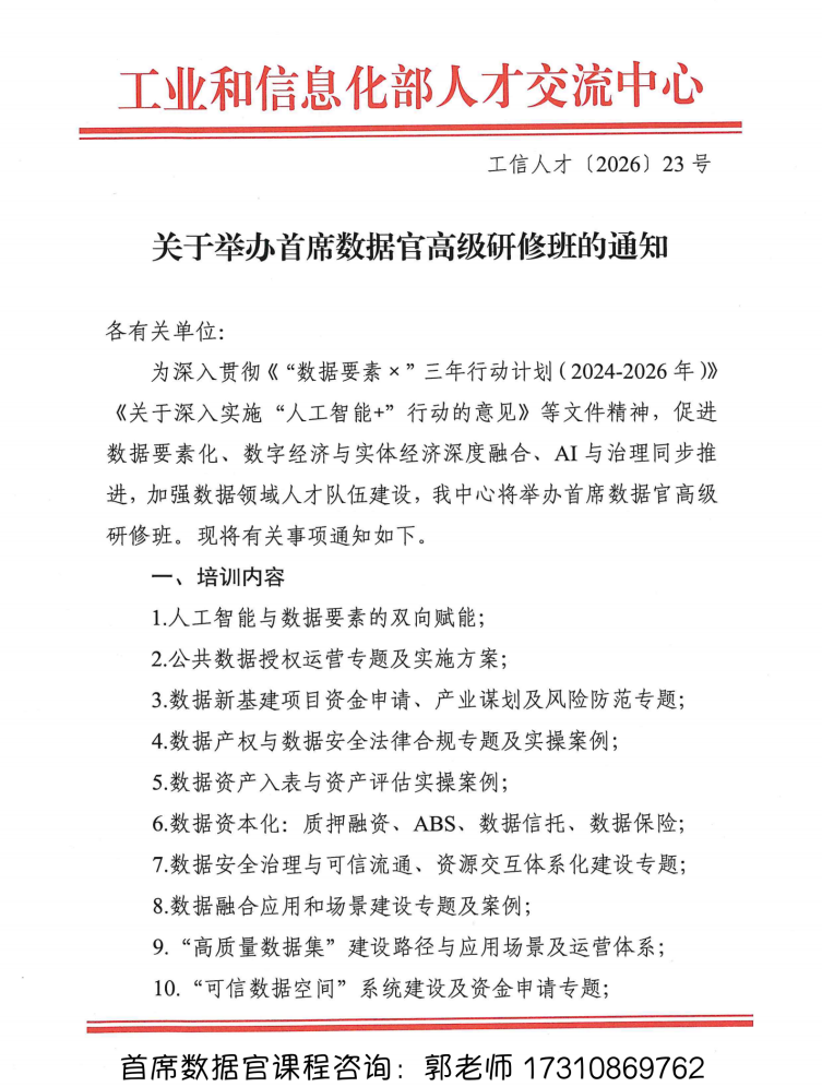 4.首席数据官高级研修班的通知(直播同步、100多课时免费学习)