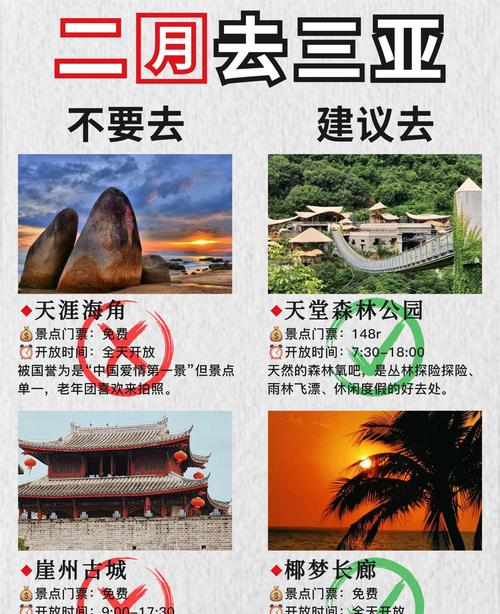 拍照要点总结。三亚鹿岭路观景最佳夜景,亚龙湾森林公园索道开口看海,阴天别怕;南山观音早九点前,人少,逆光弱。天涯海角石刻侧侧拍,构图讲究三分法;儋州东坡书院,中午光影正好,洋浦盐田退潮时鞋底防滑。