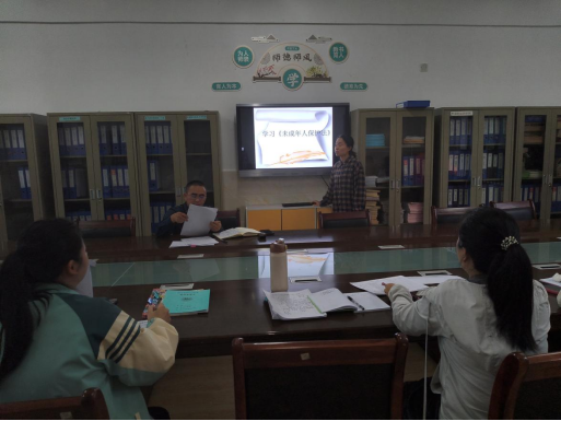 2、3月16日,黎文慧办公室主任组织教职工学习《未成年人保护法》。
