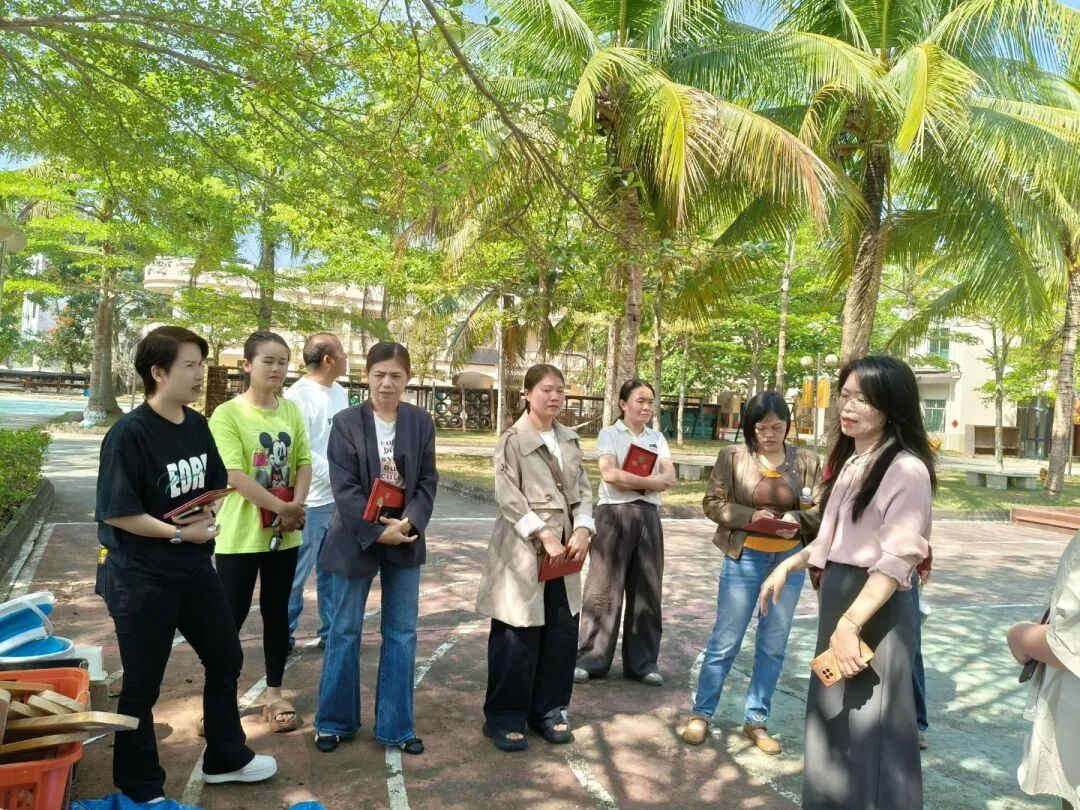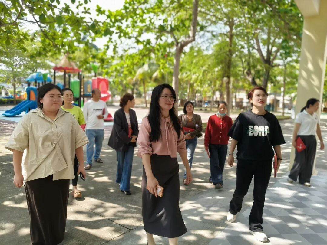 阳光正好,绿意满庭。家委会们在保教主任黄老师的带领下,漫步于幼儿园户外场地,实地了解家园协作的各项安排。