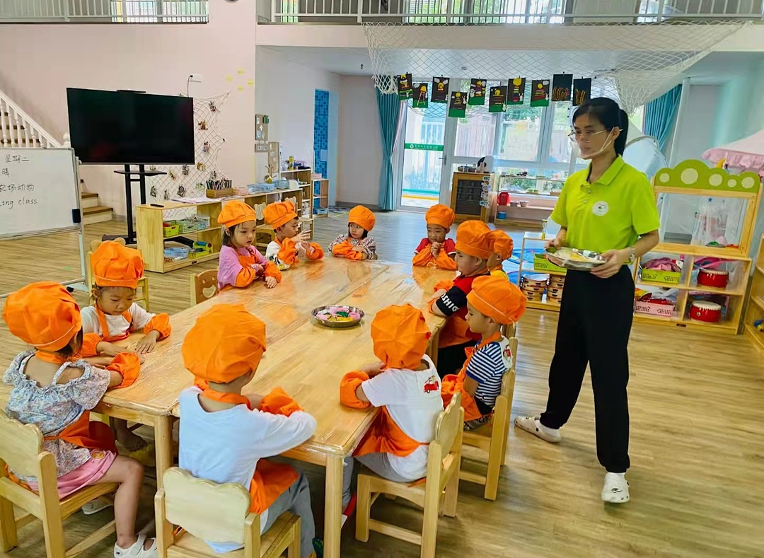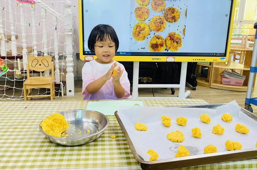 烹饪不只是简单的制作食物,我们的美食烹饪课涵盖了自然概念、科学概念和数学概念。幼儿在动手制作美食的过程中,了解不同食物的营养价值,养成良好的饮食习惯。