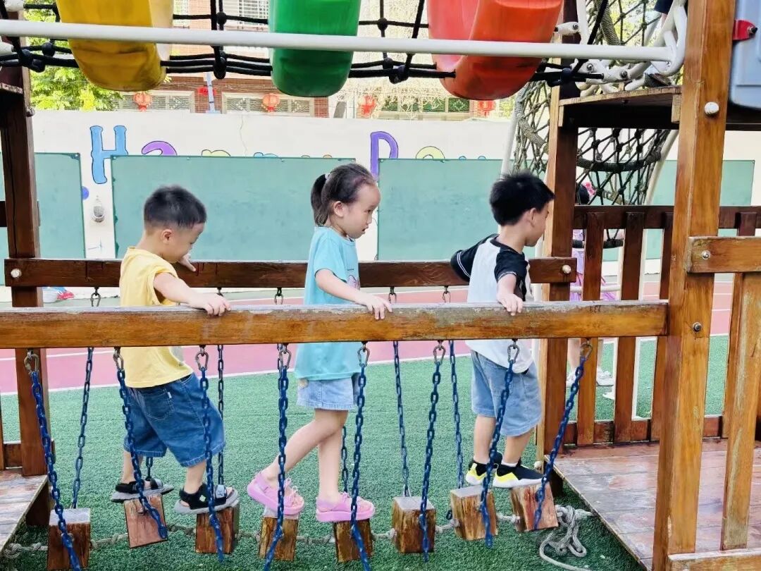 身心健康是幼儿发展的基础,体能训练是以发展幼儿体力、增强幼儿体质为主要任务的教育。我园把音乐、游戏与体能活动相结合,运用各种体智能器材创意发挥形成优质课程。在游戏中培养孩子们的运动技能,让幼儿更科学、合理的参与户外体育活动,提高幼儿基本动作的同时培养其身体素质和心理品质。