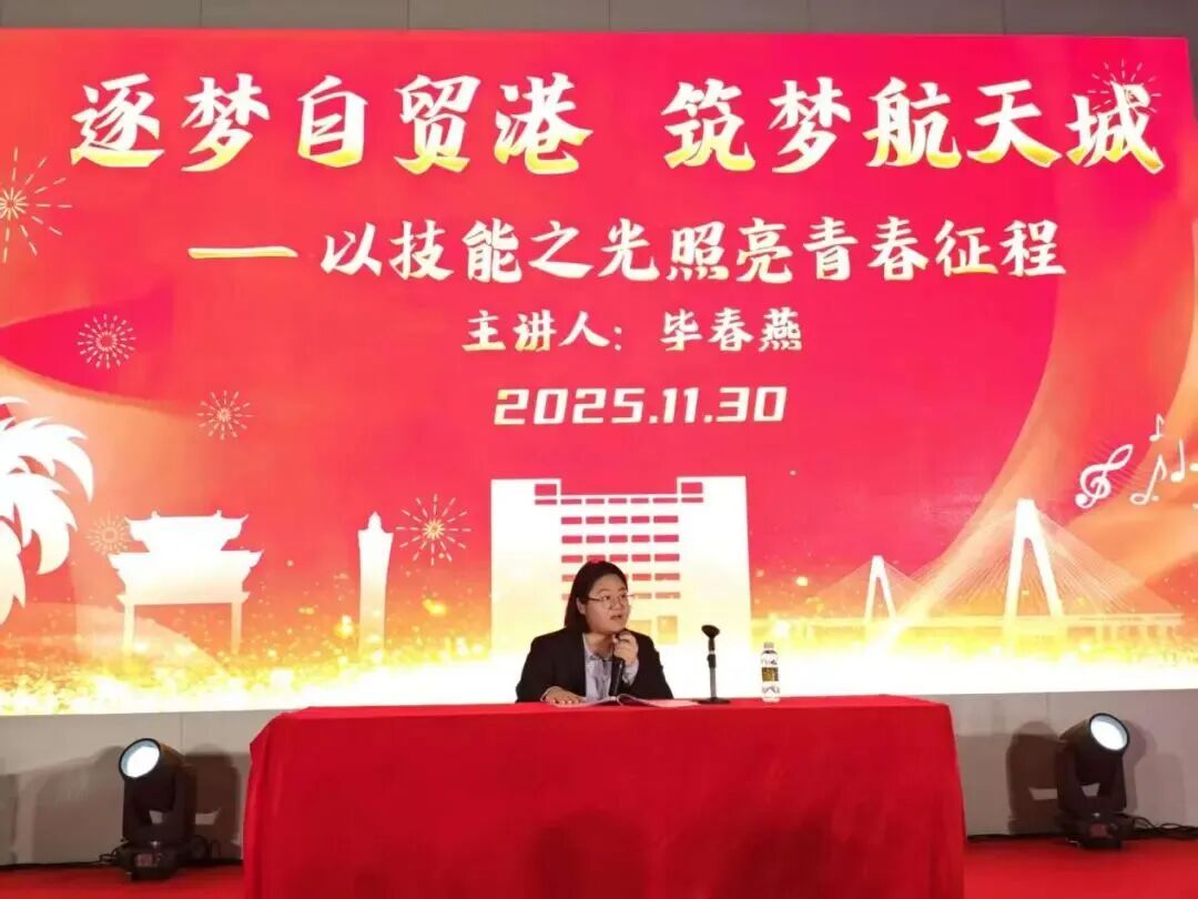 12月25日下午,以“建功自贸港 劳动筑梦想”为主题的2025年“中国工人大思政课·海南篇”暨劳模工匠宣讲活动在我校举办。宣讲活动由校党总支委员、党办主任李冬雨主持。