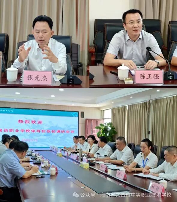 10月21日上午,海南省中华职业教育社办公室负责人焦平安一行到我校调研,我校党总支副书记、校长林斯香,党总支委员、副校长符祥峰,党总支委员、副校长符少丽及教学部门负责人陪同调研并与焦平安一行座谈交流。