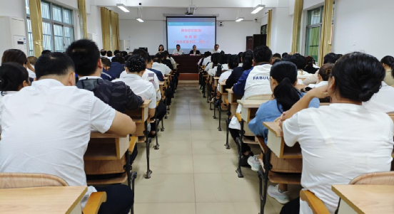 10月22日下午,我校在五楼多媒体教室举行新任校长见面暨师德师风培训会。张光杰书记作《浅谈师者之美——忠诚 担当 成事》专题师德师风培训;林斯香校长跟全体教职工见面并深情发言。