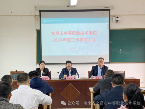 年工作总结大会,会议由张光杰书记主持,全体教职员工参加。