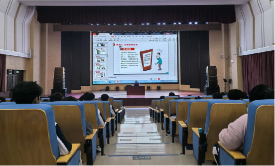 12月10日,我校法制副校长温雪玲在演播厅为25级学生开展题为《预防电信诈骗,打击网络犯罪》德育大讲堂活动。