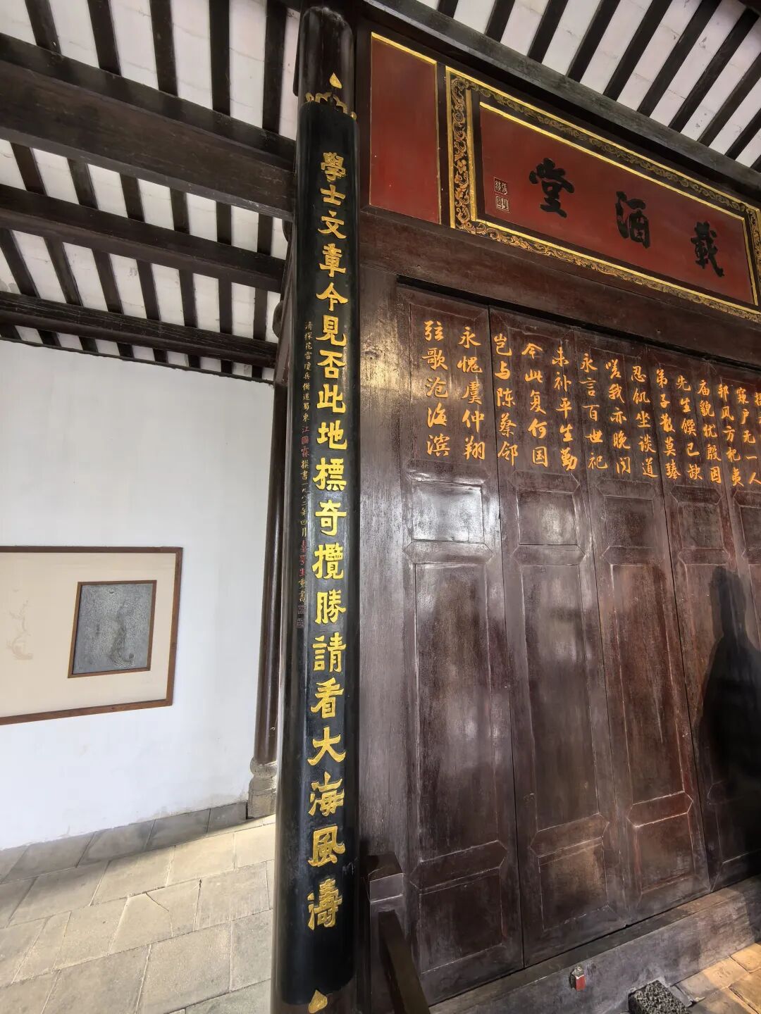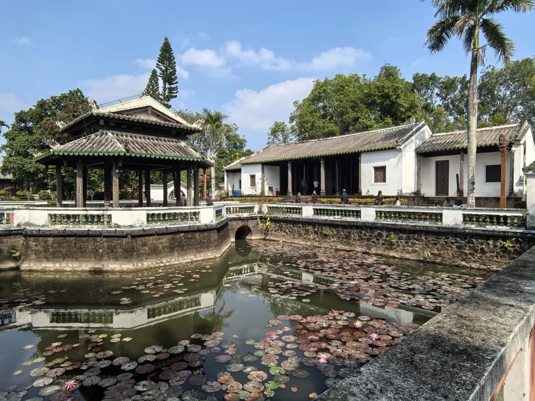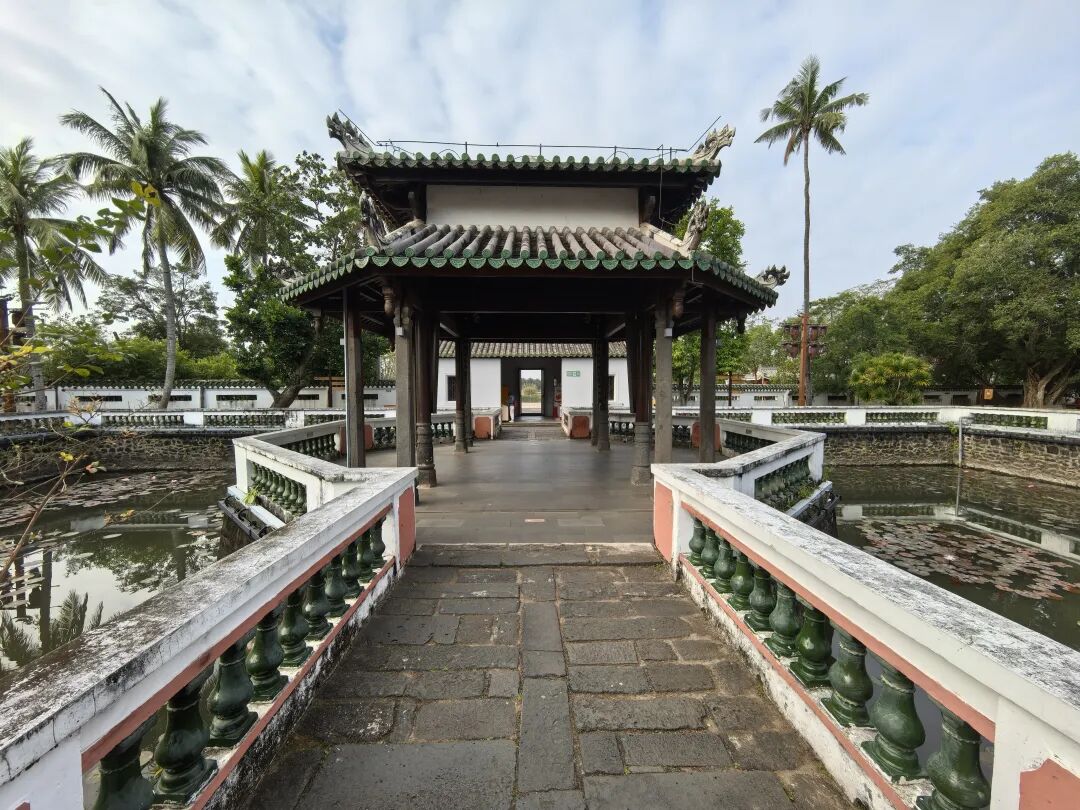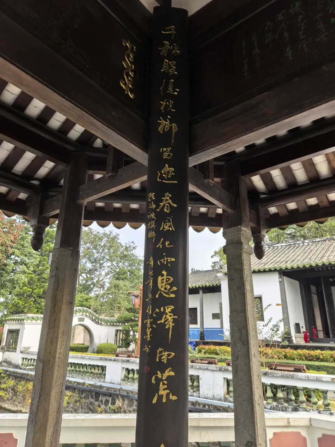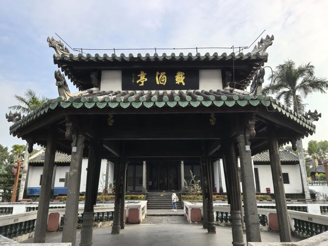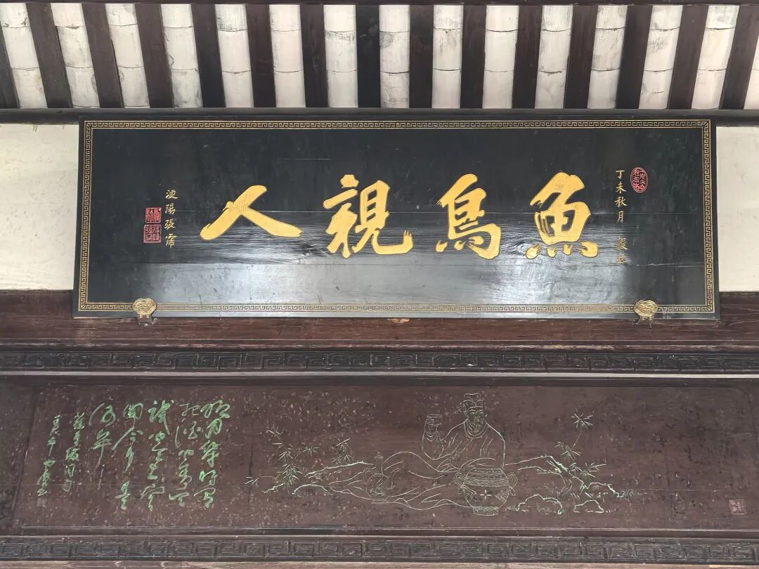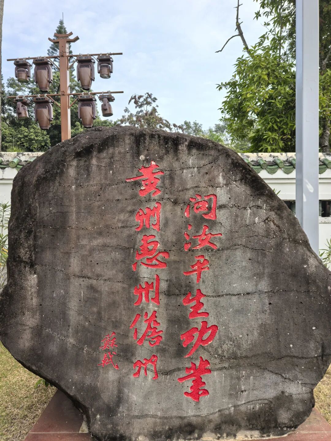 头顶这幅“鱼鸟亲人”匾额:由清朝儋州知州张霈题写。出自苏东坡《留别雩泉》中的诗句,寓意东坡认为儋州不仅山川秀美,人心友善,就连鱼鸟都懂人情、解人意,与人亲近。