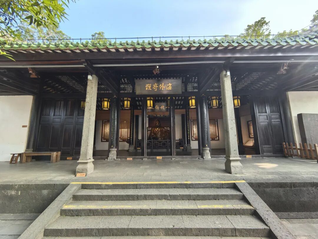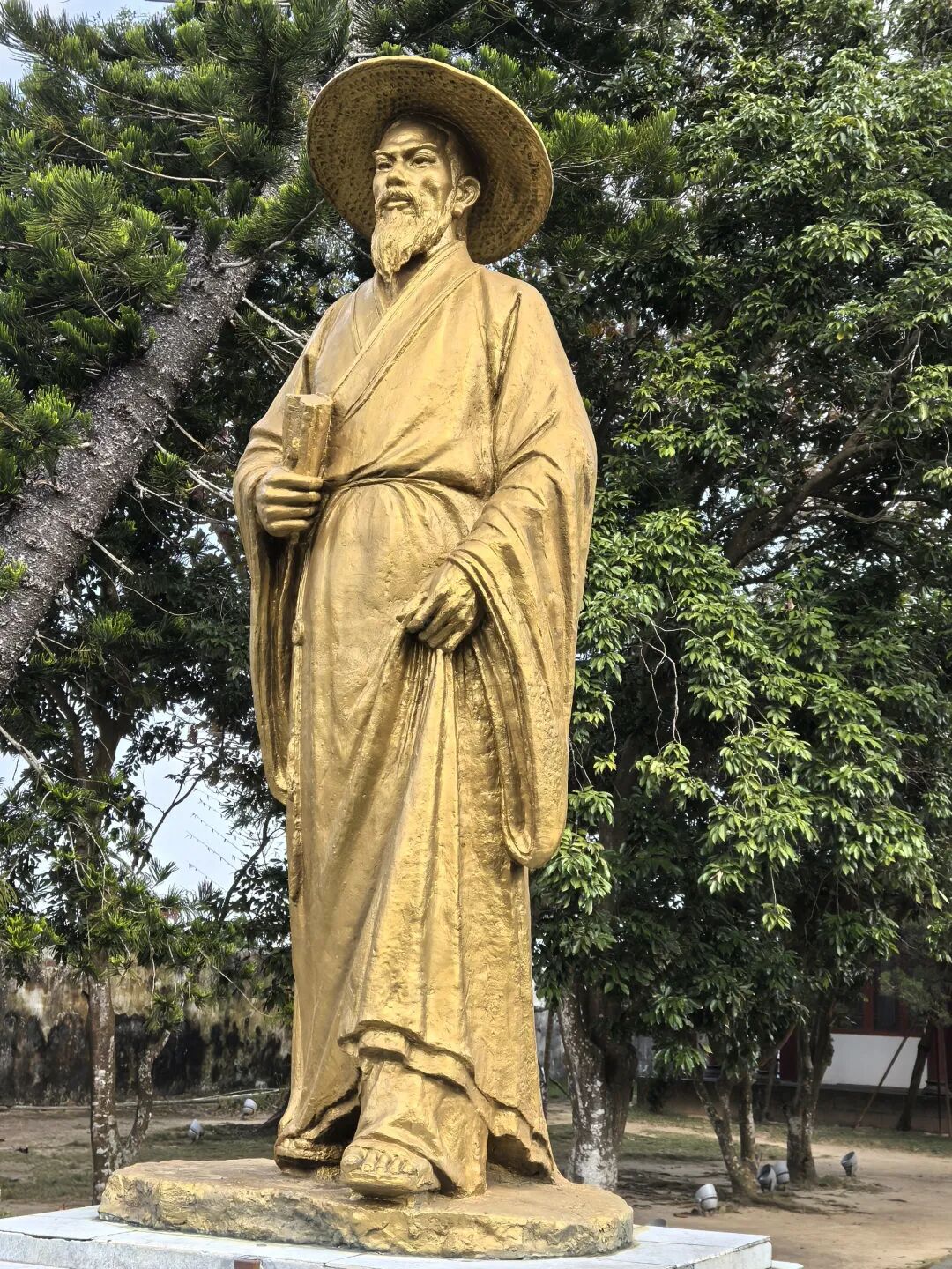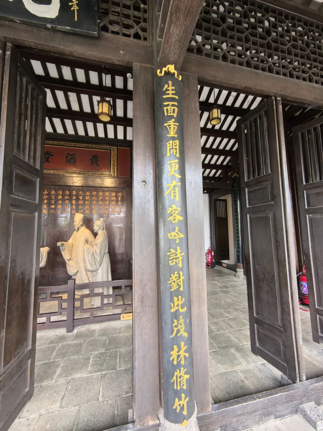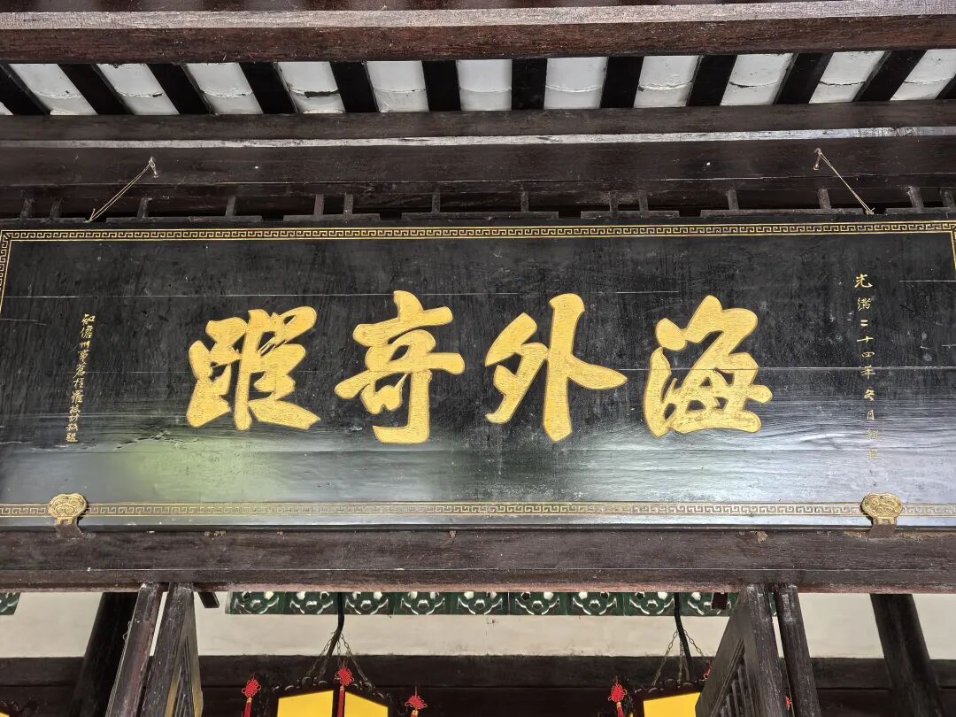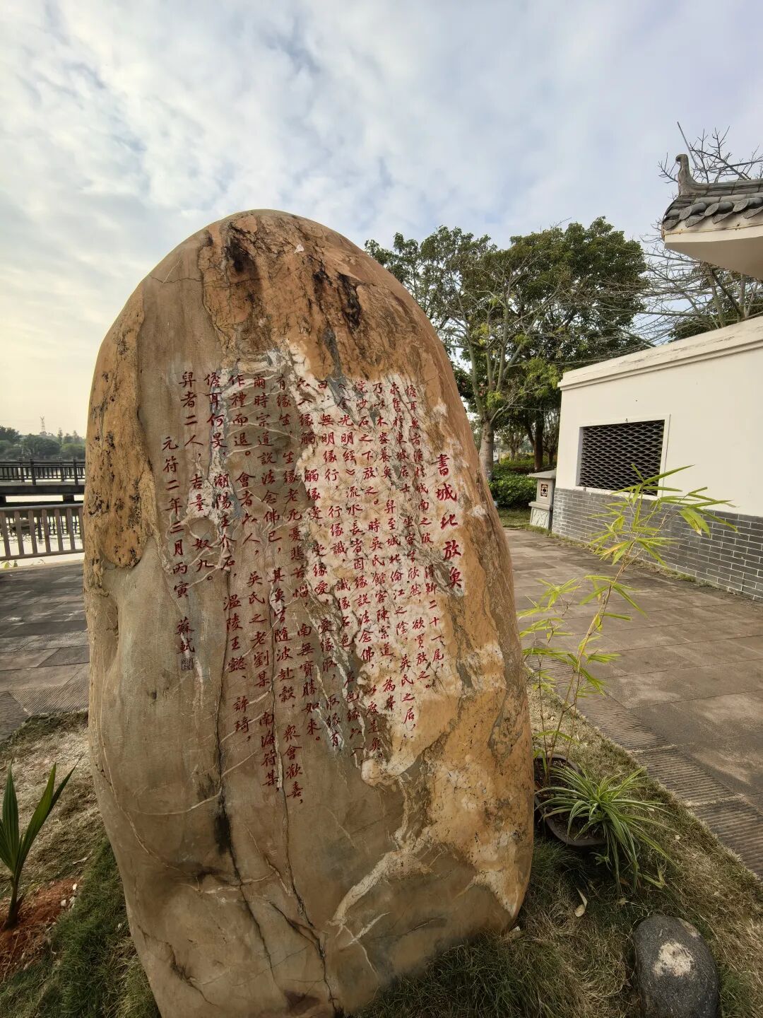 头顶这幅“鱼鸟亲人”匾额:由清朝儋州知州张霈题写。出自苏东坡《留别雩泉》中的诗句,寓意东坡认为儋州不仅山川秀美,人心友善,就连鱼鸟都懂人情、解人意,与人亲近。