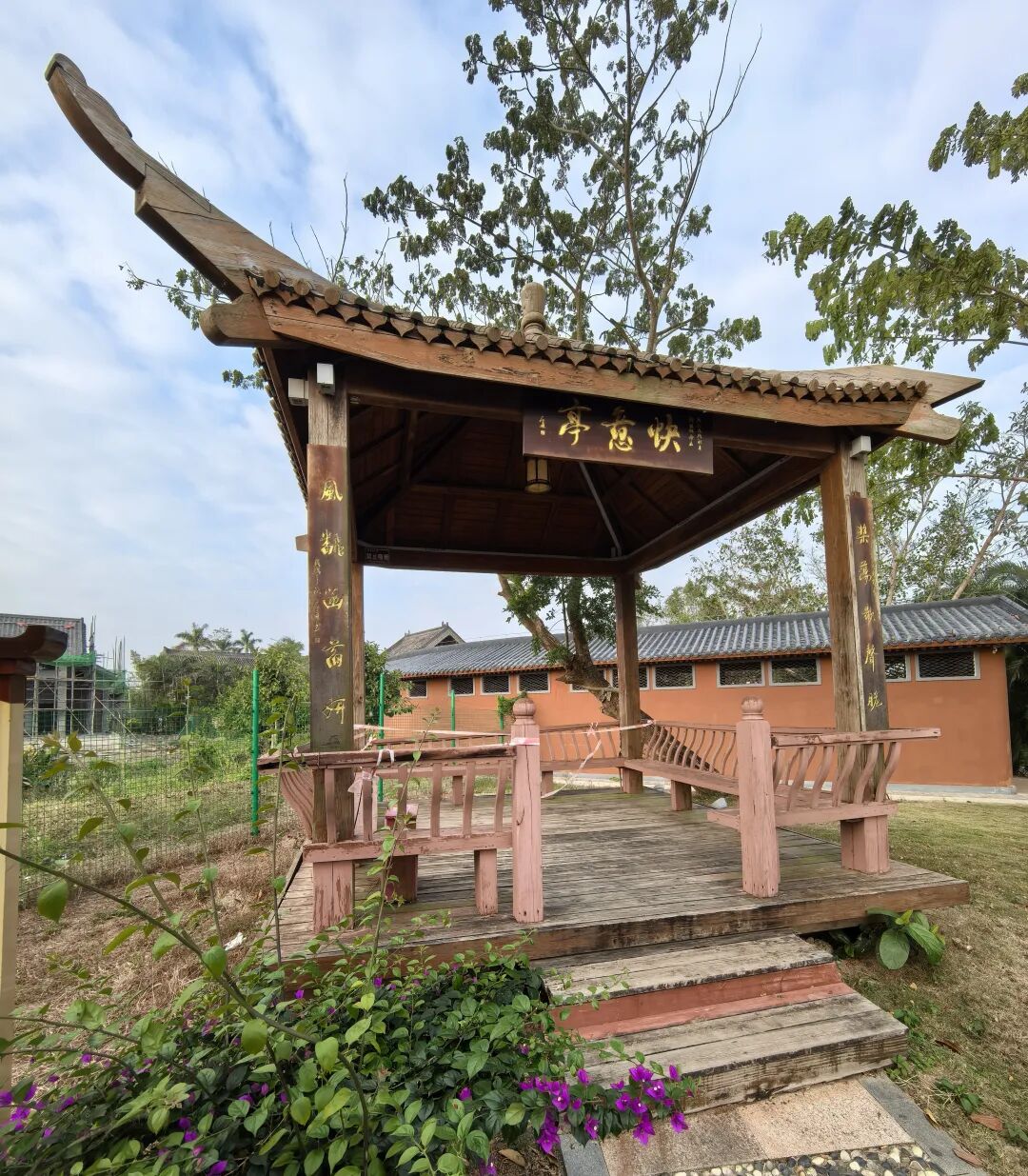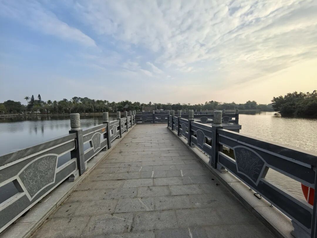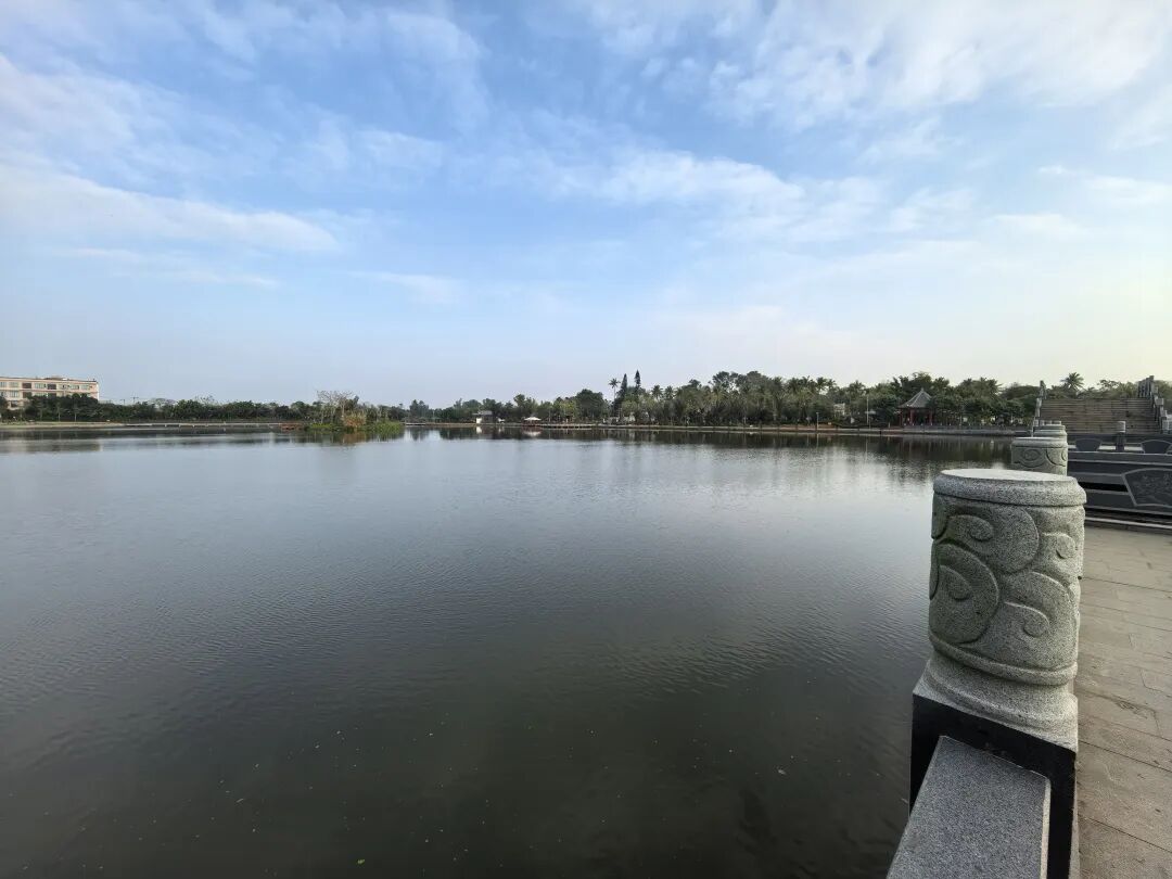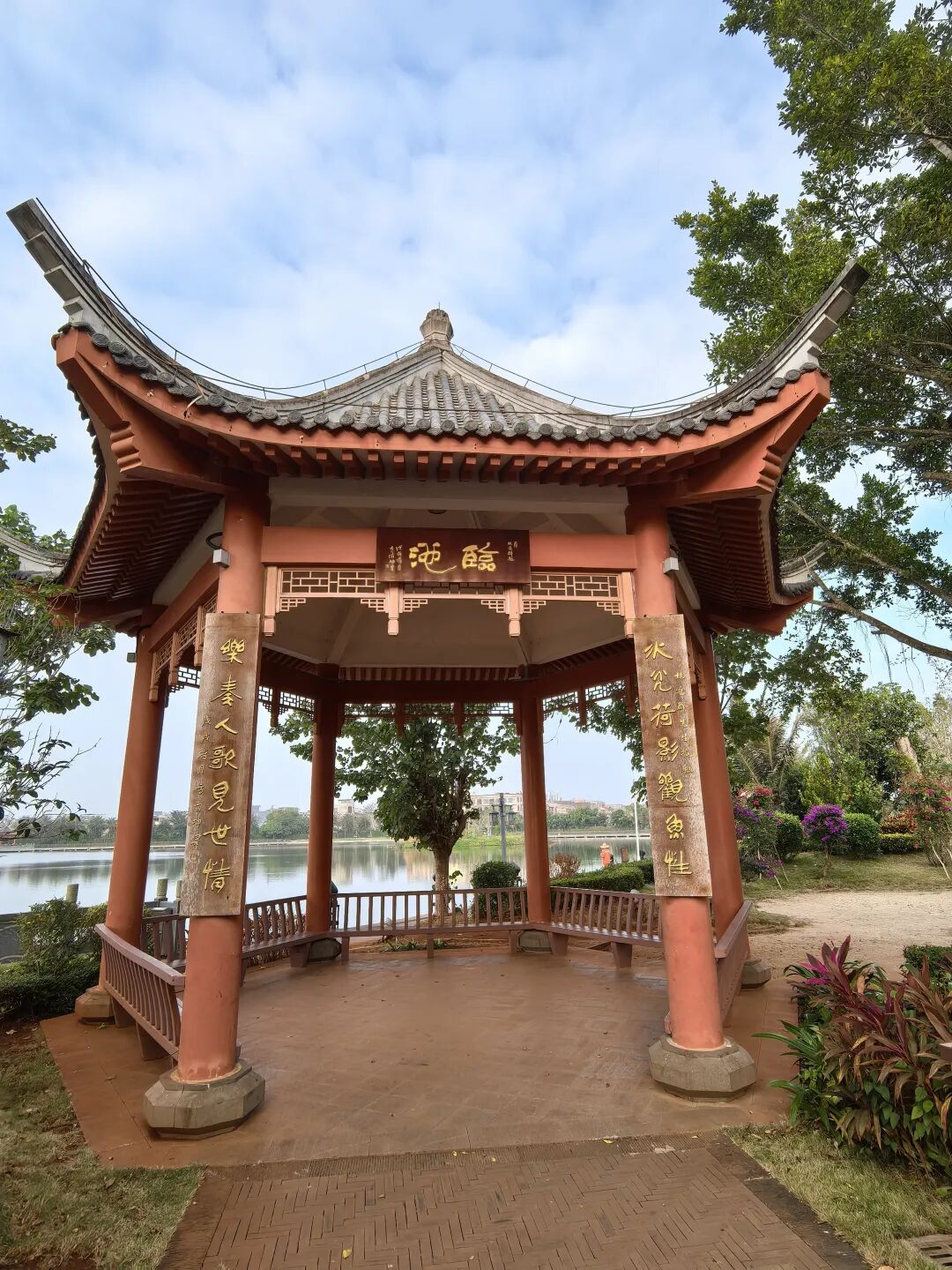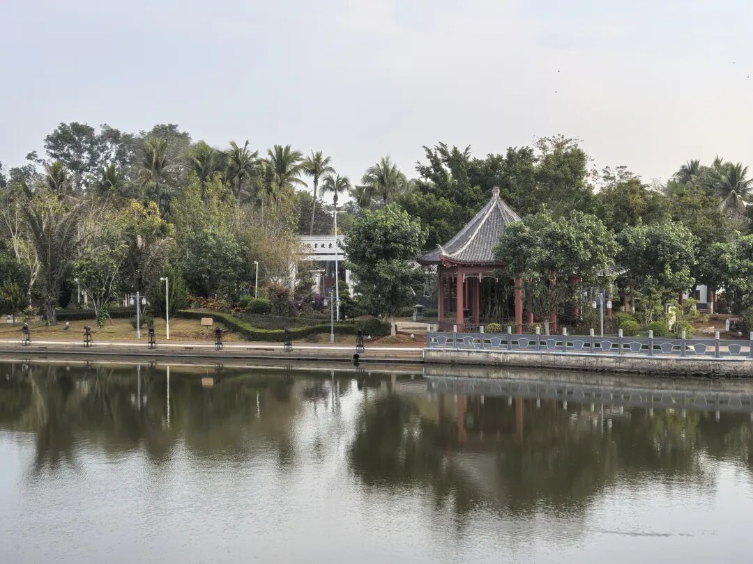 湖边右侧建有一快意亭,估计是取自东坡诗句“一点浩然气,千里快哉风”之意,若取名快哉亭,会更合意些。或取名“三适亭”,就更能体现当地文化特色了。因东坡在儋州期间曾作《谪居三适》诗,以晨起理发洗头“一洗耳目明,习习万窍通”,中午小睡“身心两不见,息息安且久”,晚上洗脚“瓦盎深及膝,时复冷暖投”为“三适”。