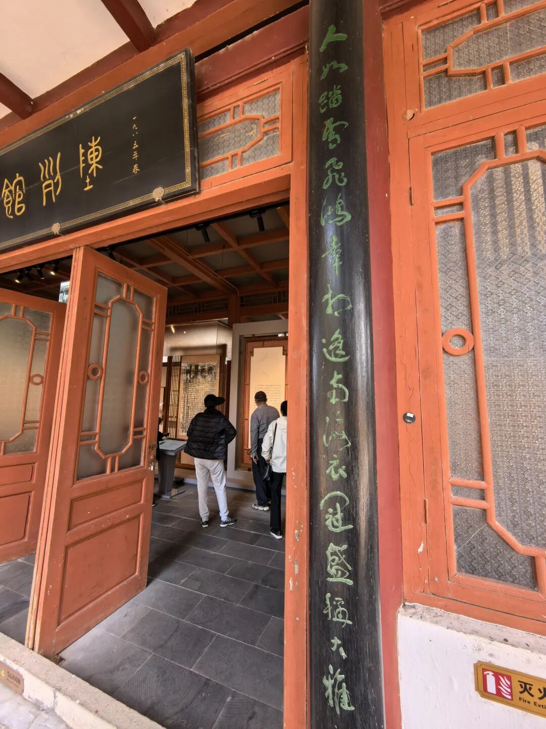 “陈列馆”三字由我国著名的古文字学家、考古学家、书法家商承祚用金文题写,陈列馆重点介绍了苏东坡的居儋功绩。门口有幅楹联为: