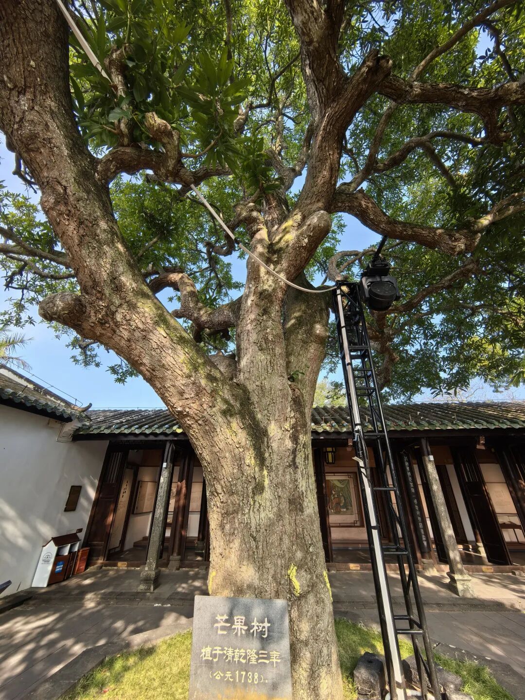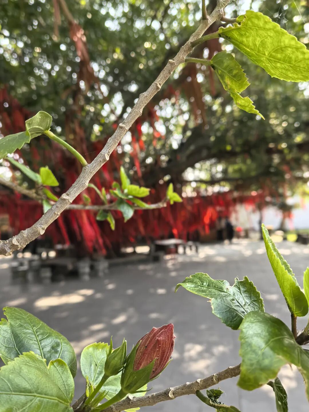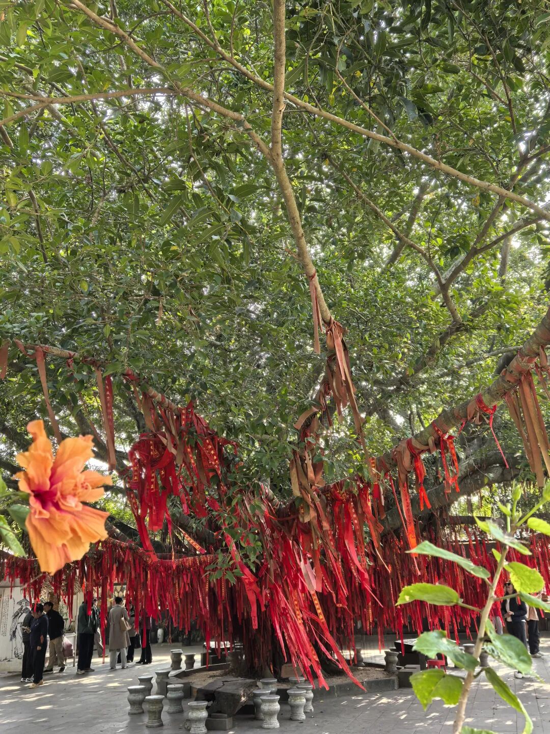 旁边有棵祈福榕树,有100多岁了。榕树被视为长寿、吉祥的象征,也是纯洁爱情的象征,古时人们喜欢绑红丝带在枝条上,寄托对远方亲人的思念。