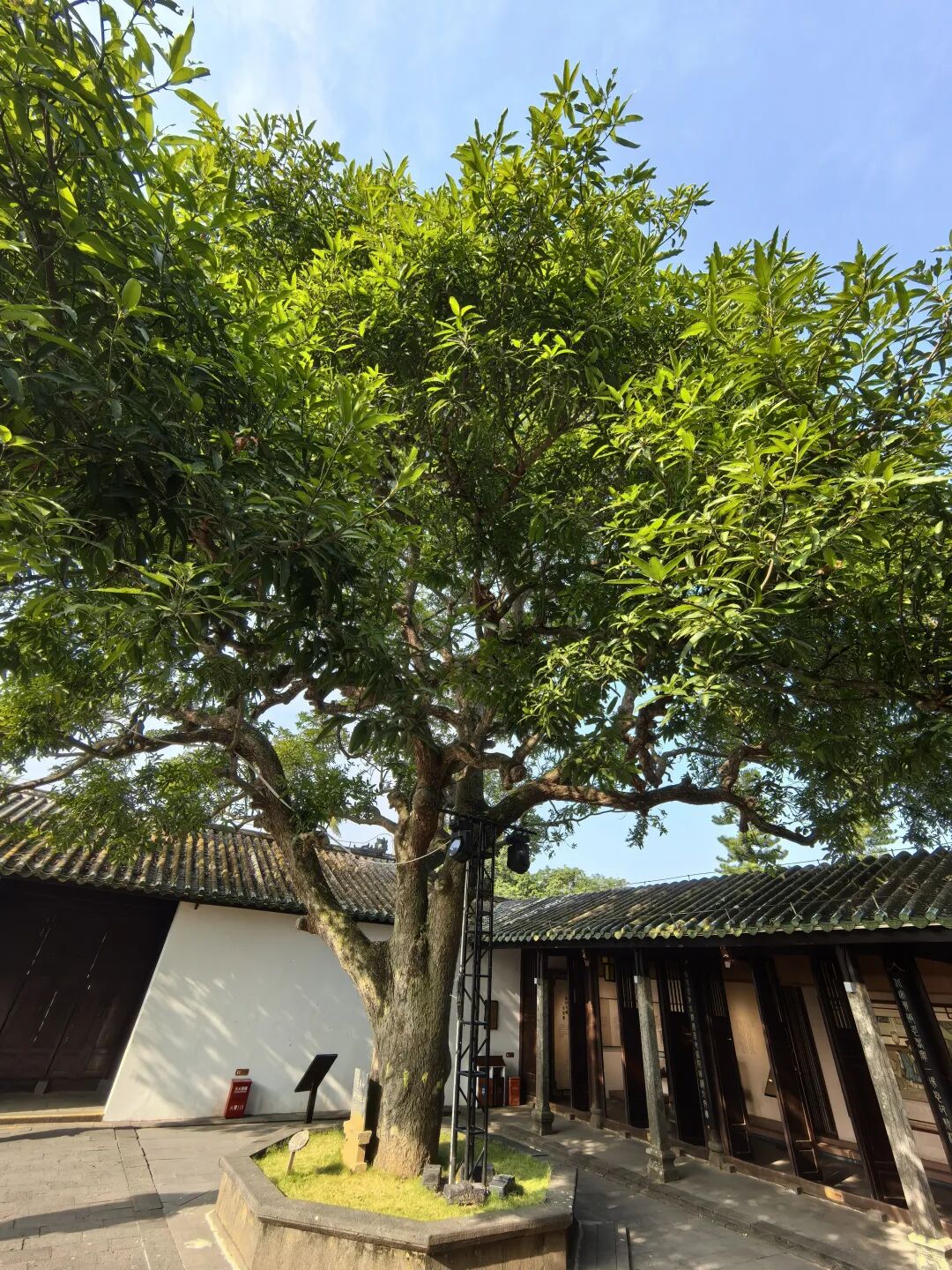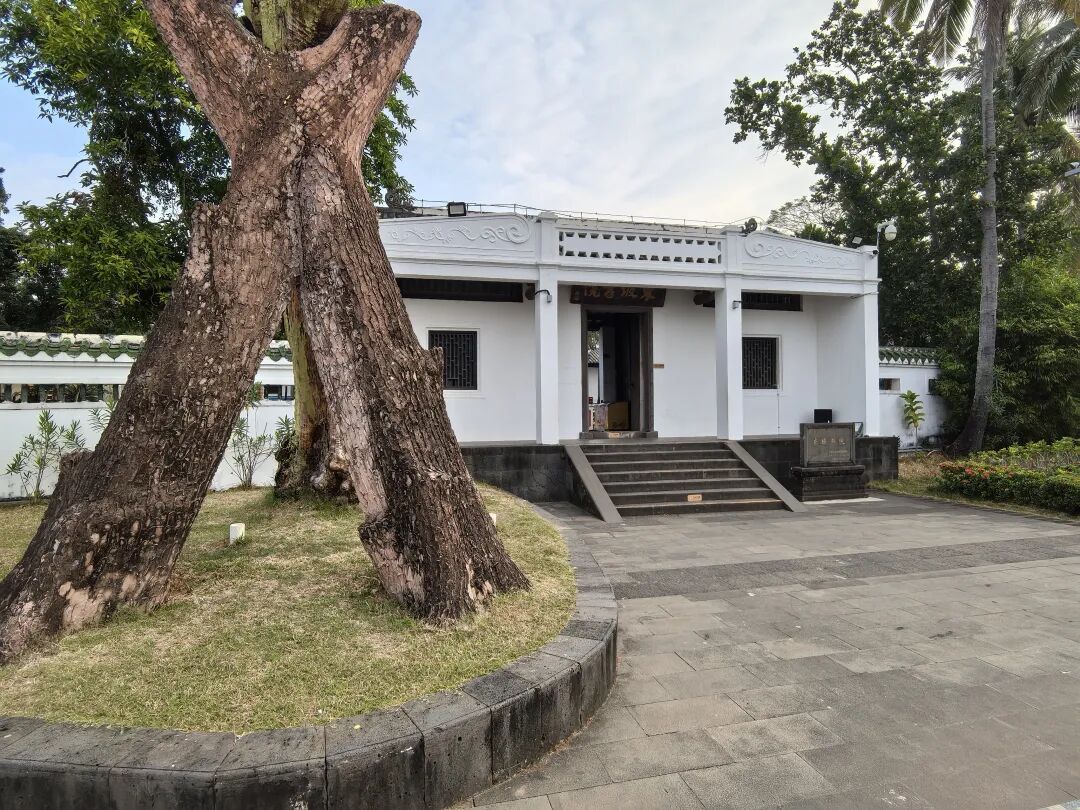 头门为清代风格的灰白廊房,门口左侧有棵古滑桃树,也称苦皮树,是明万历二十三年(1595年),儋州知州陈荣远种植,距今400多年了。可惜的是,不知什么时候干枯了。