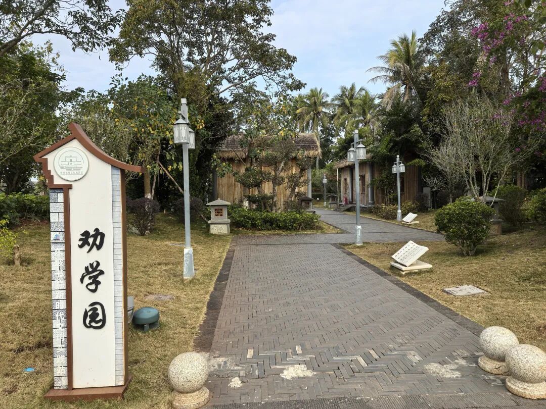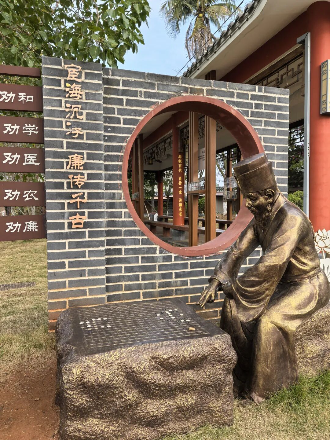 往西走就是劝学园。东坡初到儋州时,学风不盛。苏东坡看到学舍一片荒凉,学舍的先生已缺饭食,学生四散尚未回来,屋内空无一人。先生忍着饥饿与东坡交谈,令东坡十分感动。为此,他决定办学堂,自编教材,传播中原文化。他与百姓交朋友,大力倡导读书,挨家挨户去发动家长把孩子送到学堂。第二年五月,儋州的教育便发生了可喜的变化,不时可以听到书声琅琅,弦歌四起,东坡看到了南荒希望的曙光。经过努力,培养了海南第一个举人姜唐佐,才有了儋州人符确考中进士的历史。儋州文化的兴起,是苏轼弘扬文教的结果。《琼台记事录》载:“宋苏文公之谪居儋耳,讲学明道,教化日兴,琼州人文之盛,实自公启”。