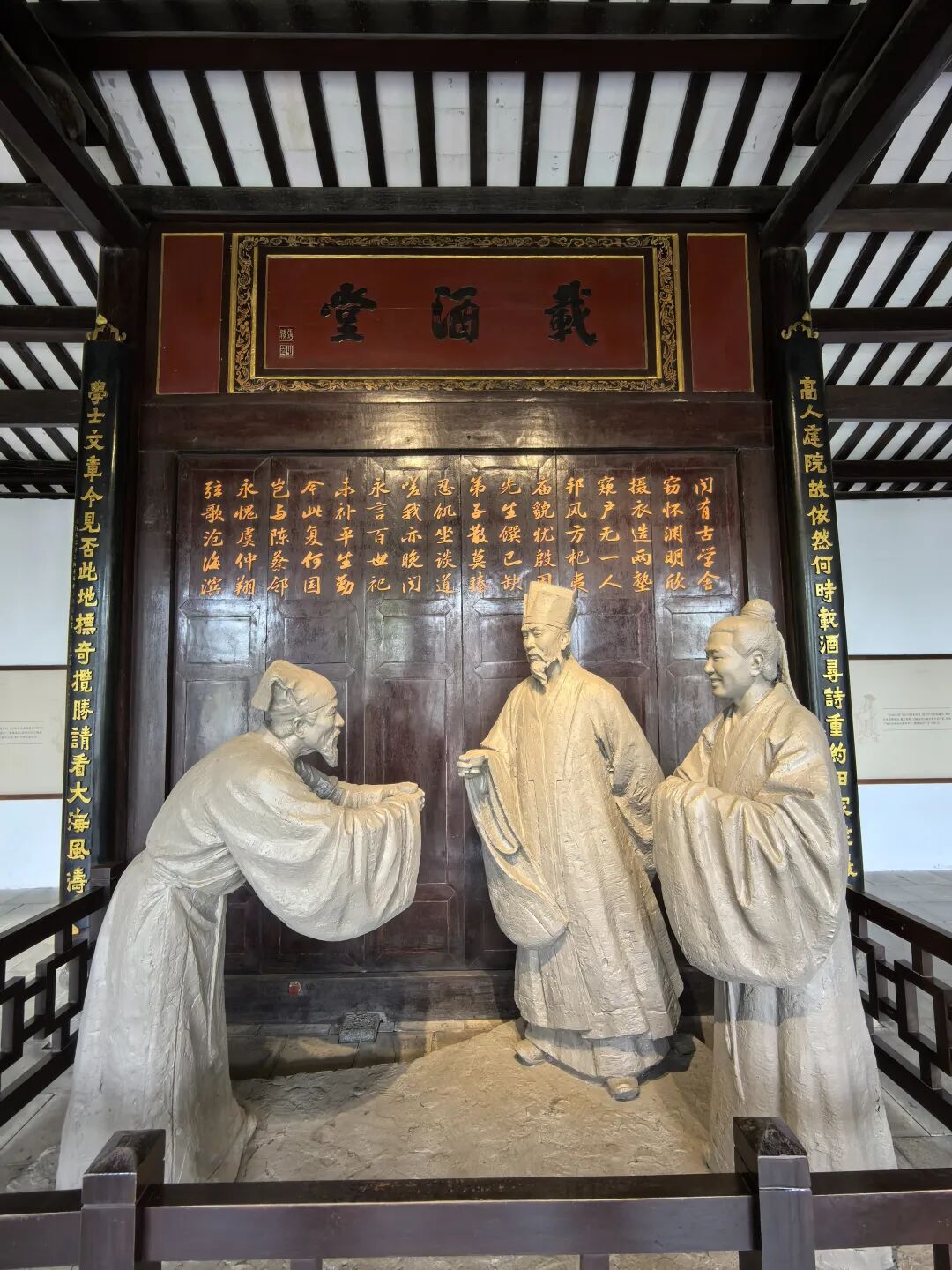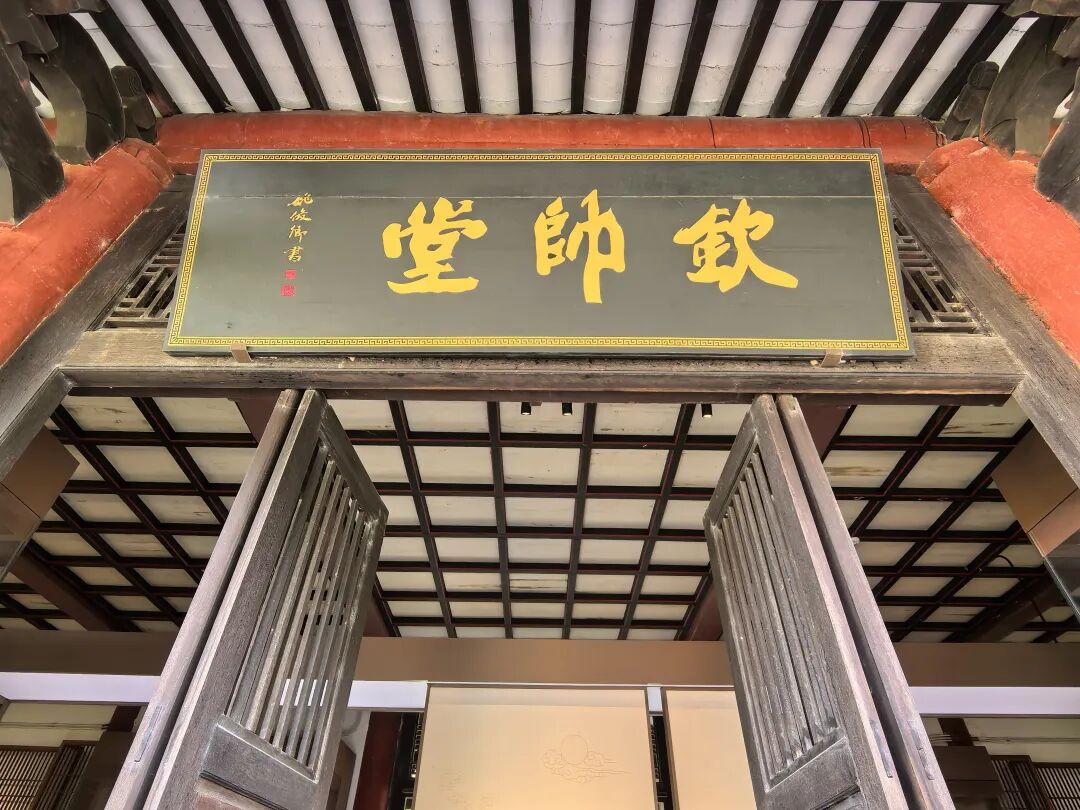泉的对面是钦帅堂,始建于明万历二十三年(1595年)。“钦帅堂”内有东坡书画艺术陈列,上方的“一代文宗”匾额,由书法家、中国书法艺术研究院院长启笛书写。
