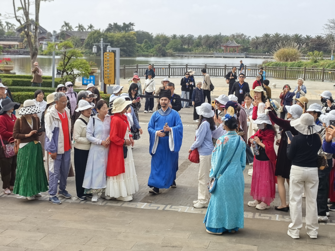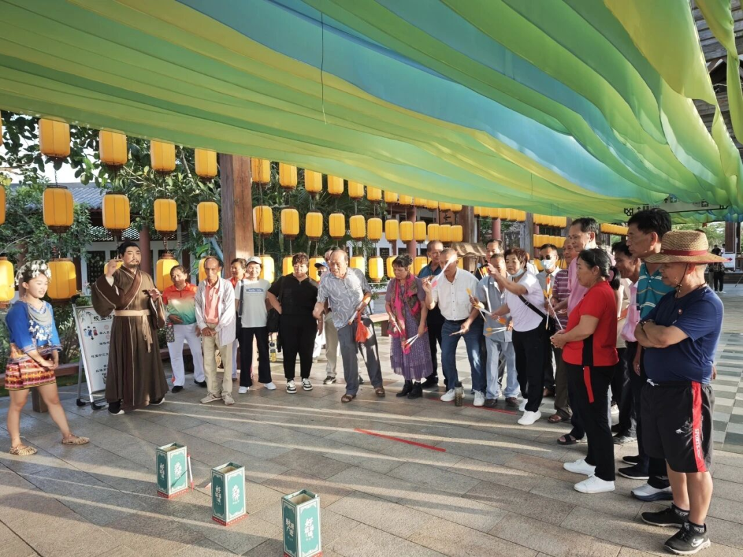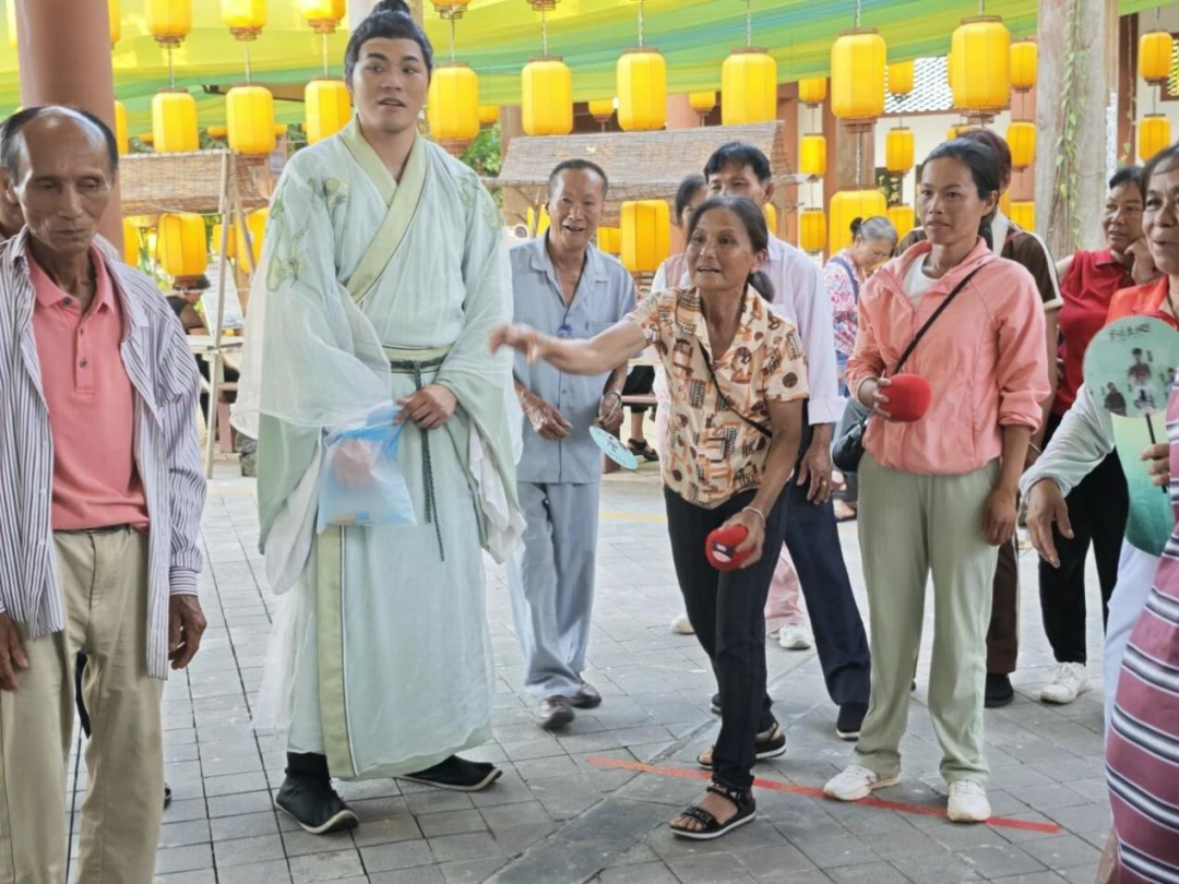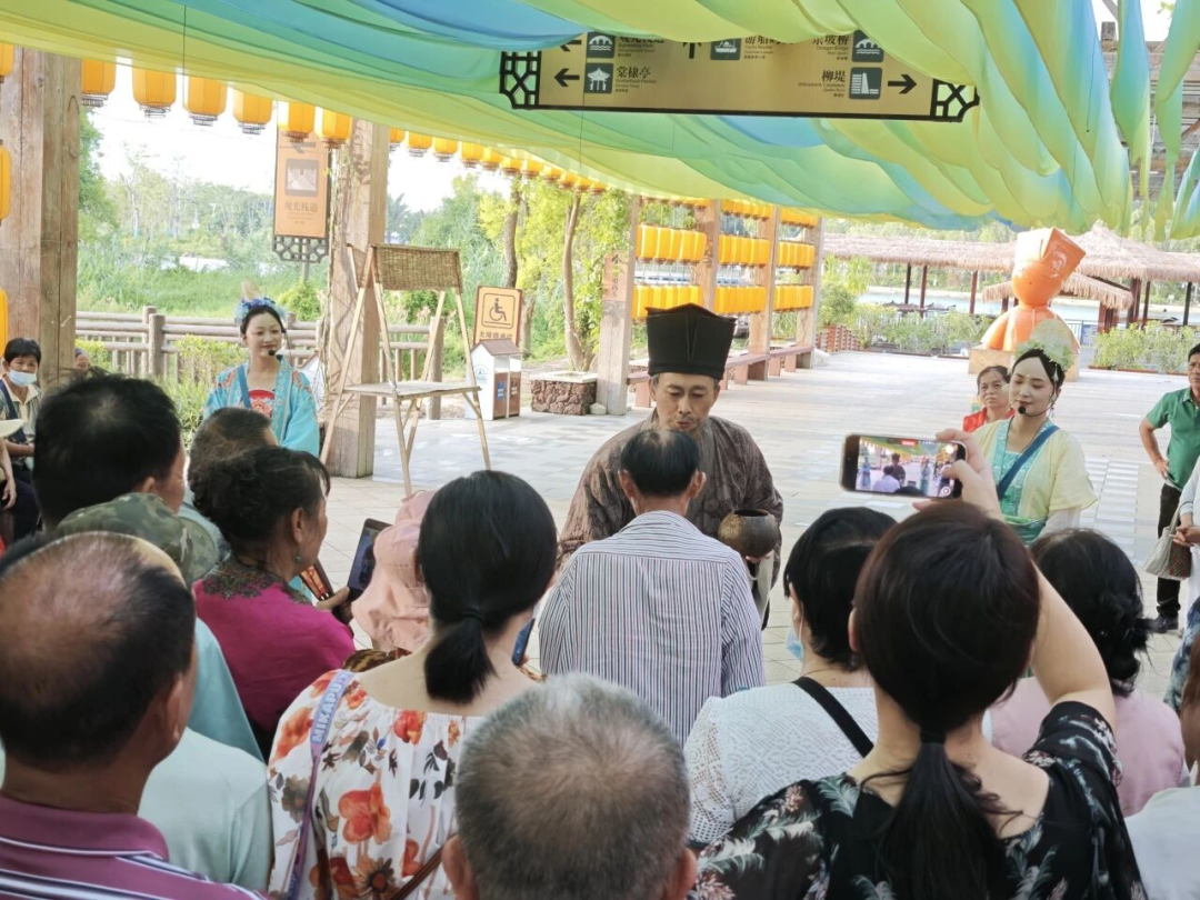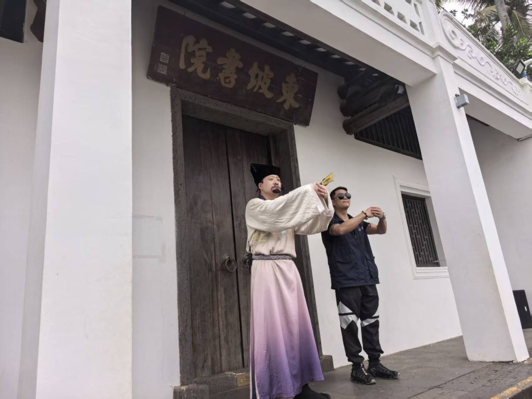 ② 东坡知答台(东坡学堂前),“东坡书童”手持题签筒,提问东坡生平、儋州诗作等相关题目,10秒抢答,连续答对3题额外赢银票,轻松get东坡文化小知识!