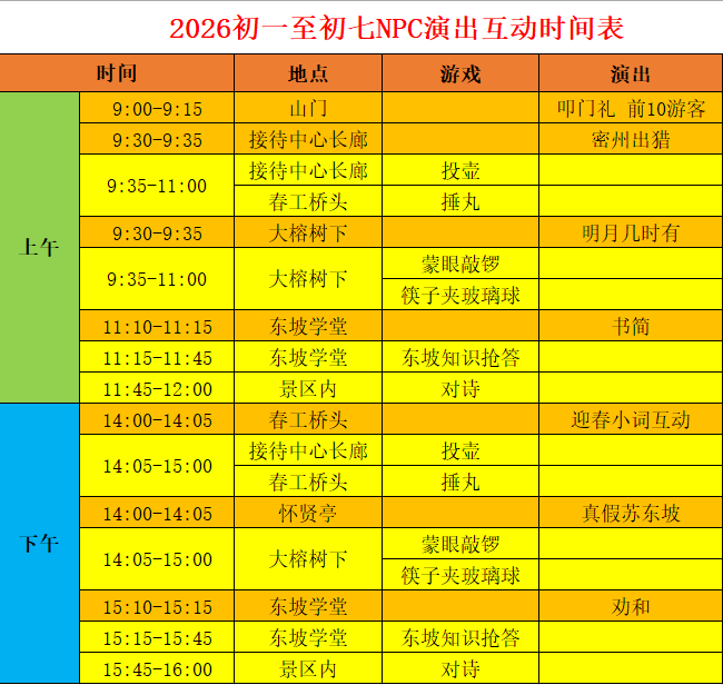 ① 初一至初五,每日上午9:00景区开园后,前10名完成购票入园的游客,可专属参与张中叩门礼,沉浸式体验到东坡书院求学,先到先得、赠完即止,解锁入园第一份新春惊喜!