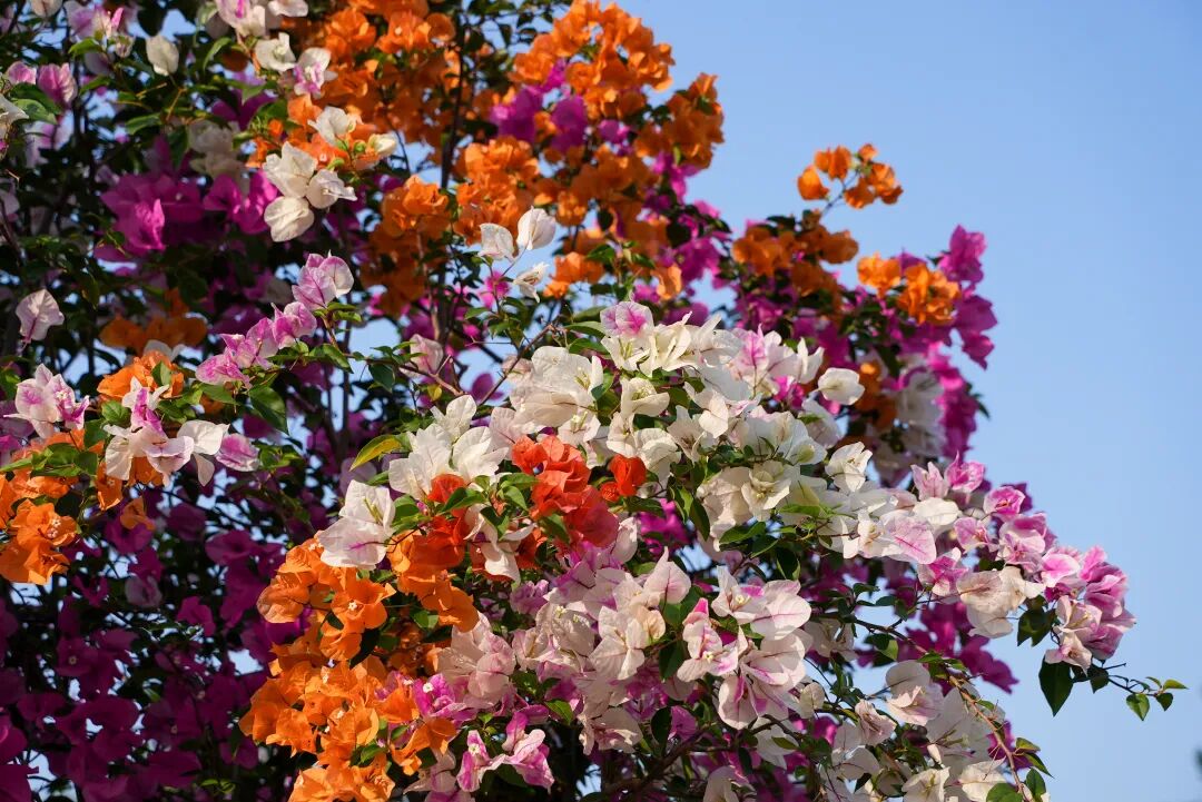 在东山岭脚下的溪边村,一片热烈的三角梅花海正悄然盛放,缤纷色彩交织如春季的调色盘,蜿蜒成一条令人沉醉的“花路”。漫步其间,走花路、赏书画、品咖啡......花与人相映,不知究竟是人在花中行,还是花在身旁动。