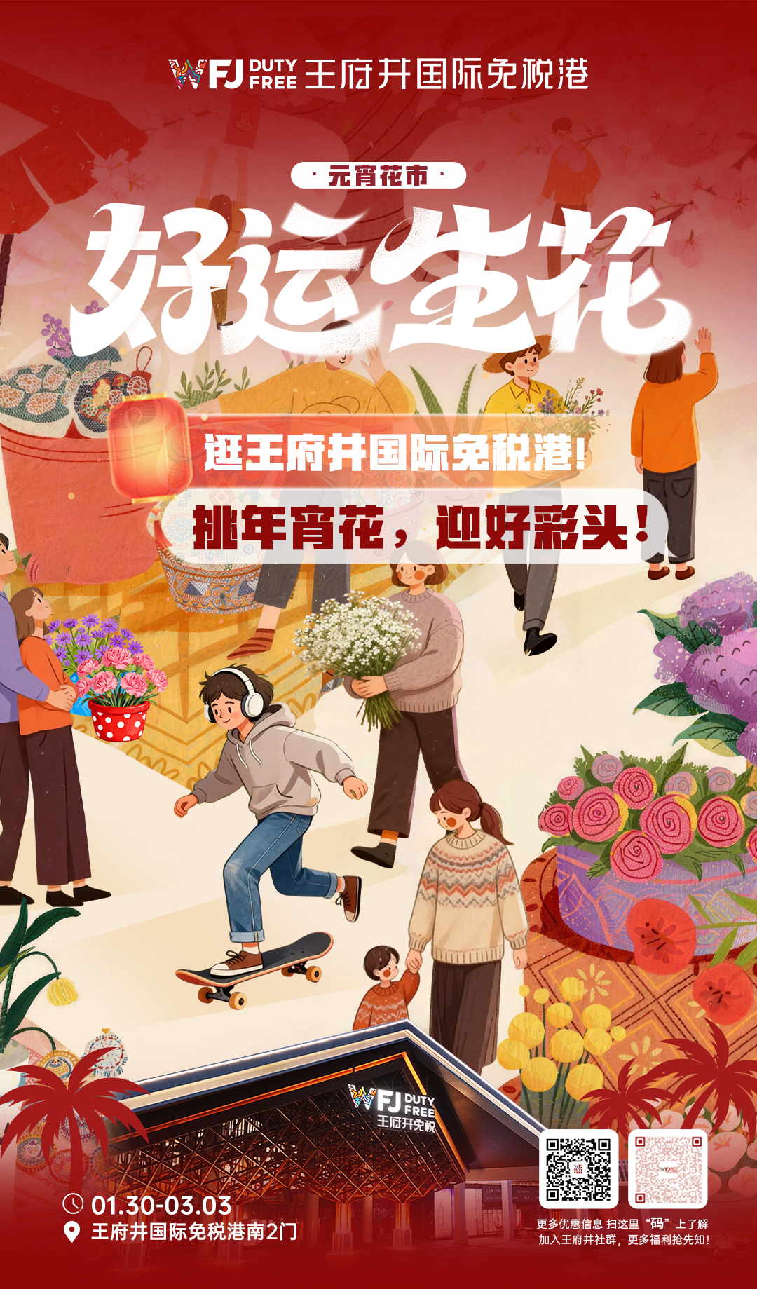 “花开富贵,春满人间”。王府井国际免税港元宵花市已开启,来选一束年宵花,把一整年的美好寓意捧在手中。