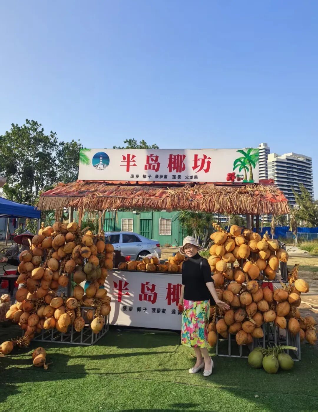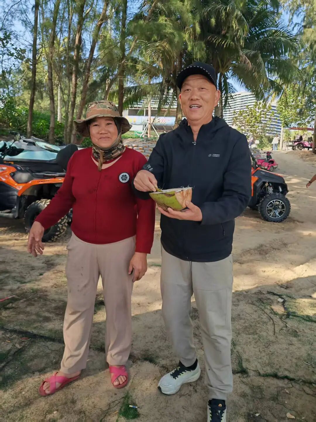 我们坐在海边,喝一个椰子水,买票,20元每人,坐上观光车直达景区最南端。