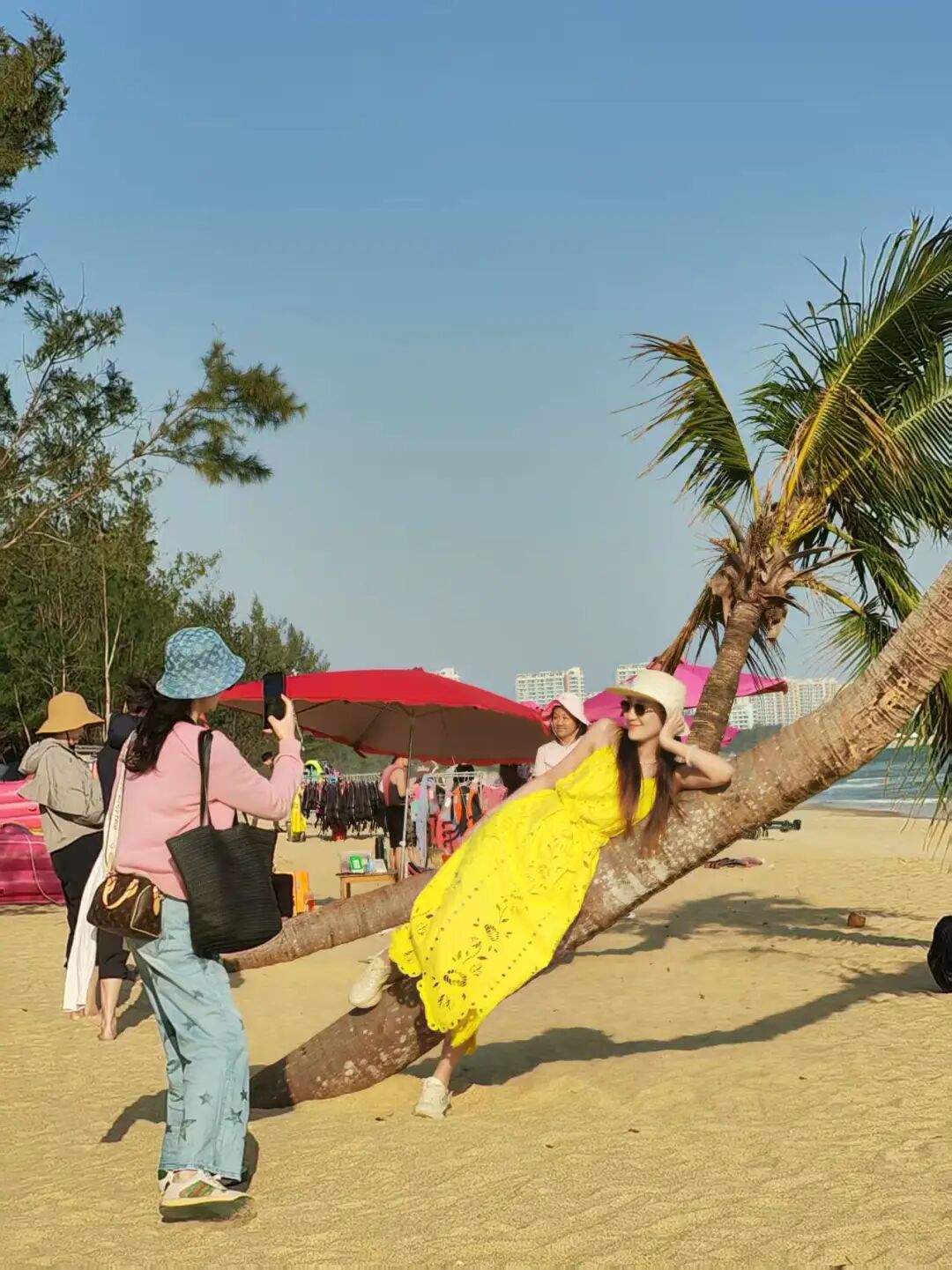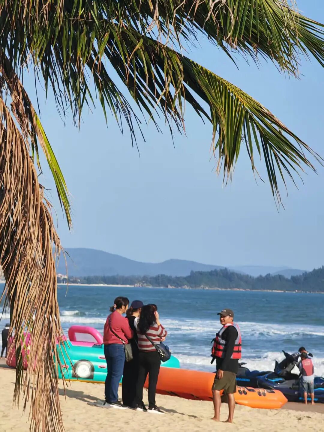 海岛上,游人摩肩接踵,靓女们倚在歪脖子椰树上各种摆拍,小朋友跟着爸妈在海边捡贝壳。