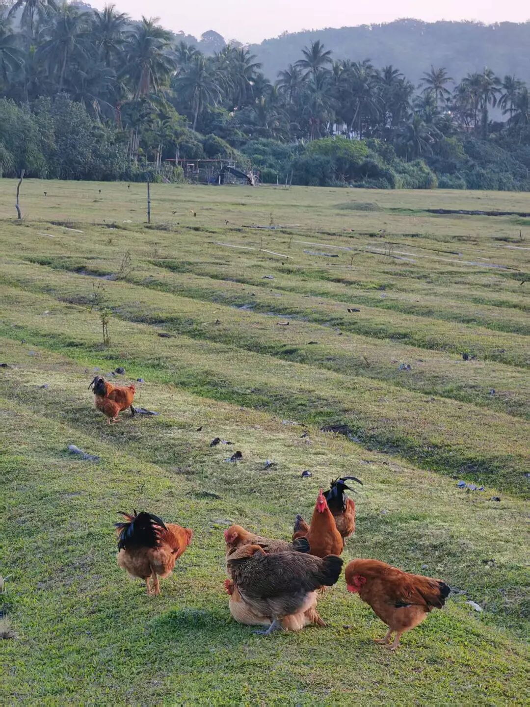 椰风吹拂,凤凰树夹道,路边的农场,慈祥的老牛带着小牛在路边慢行,甚至卖鱼的地摊,槟榔青小档,沿途经过一个小市场,鸡鸭呱呱,鱼鲜果香。